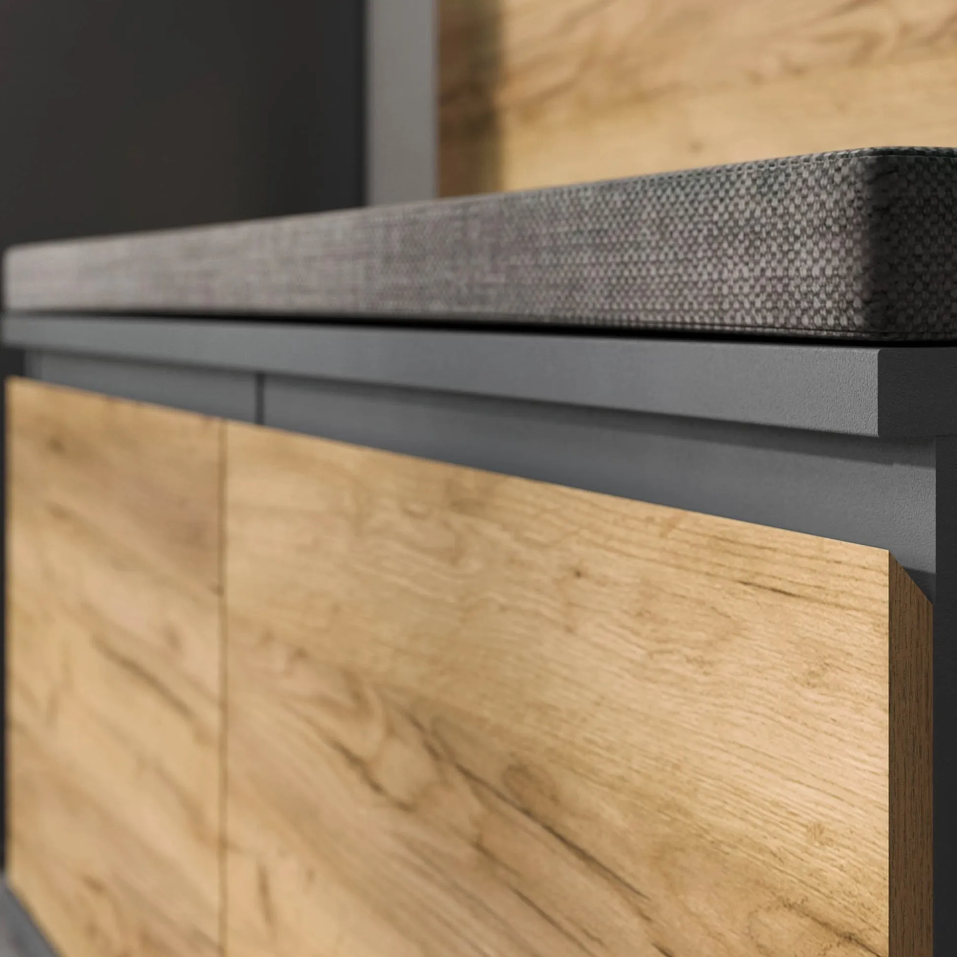 Deze praktische hal bank vindt gemakkelijk zijn weg in elk interieur. Voldoende ruimte voor ongeveer 8 paar schoenen. De deuren zijn voorzien van soft-close en de legplanken zijn in hoogte verstelbaar. Deze serie meubelen is geproduceerd in Duitsland en is van hoge kwaliteit. Door een sterke melamine afwerking in combinatie met een ABS-kantafwerking ben je met deze meubels verzekerd van een lange levensduur. Eenvoudig te monteren met behulp van een duidelijke montagehandleiding. Leuk te combineren met de andere items uit deze serie!