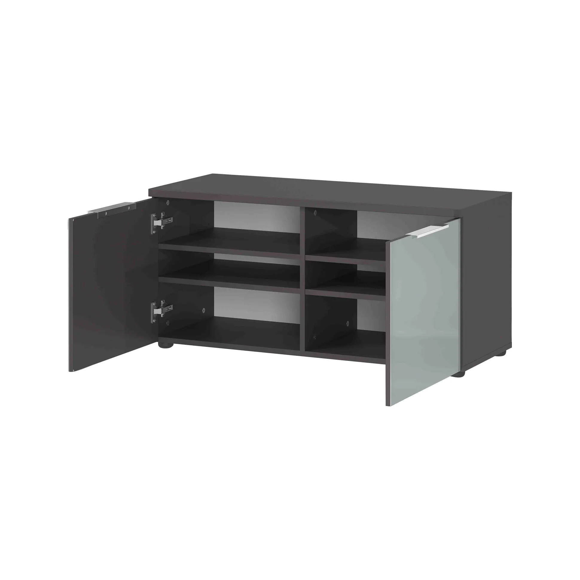 Stijlvolle halbank met voldoende opbergruimte voor ongeveer 12 paar schoenen. Zodra je de juiste schoenen hebt uitgekozen kun je deze gemakkelijk zittend aantrekken. Achter de deuren bevinden zich 2 verstelbare legplanken. De glazen fronten in combinatie met de grafieten kast maakt deze halbank een echte eyecatcher. Zitkussen is separaat bij te bestellen. Gemakkelijk te monteren door middel van de bijgeleverde montagehandleiding. Bekijk ook de andere producten uit deze serie!