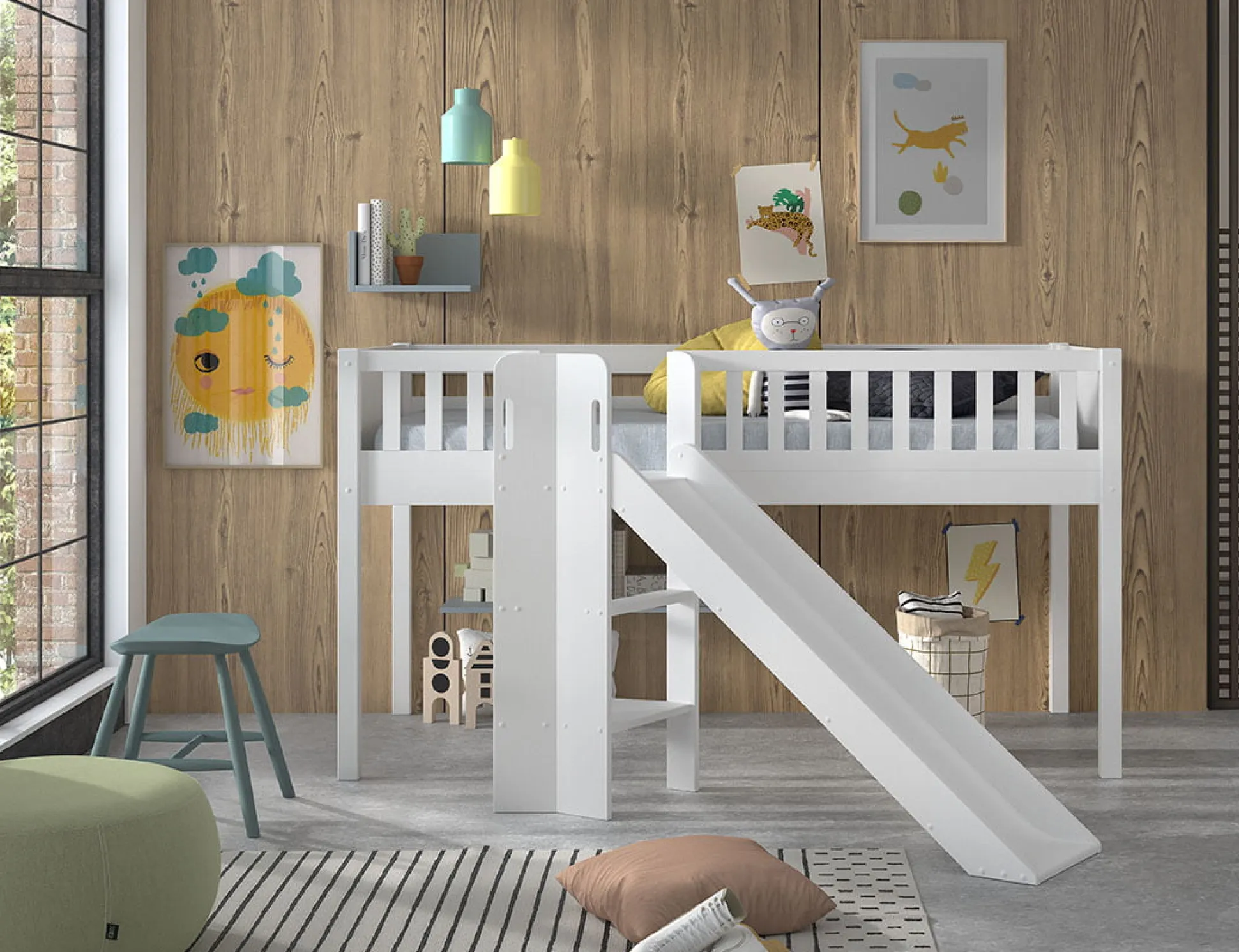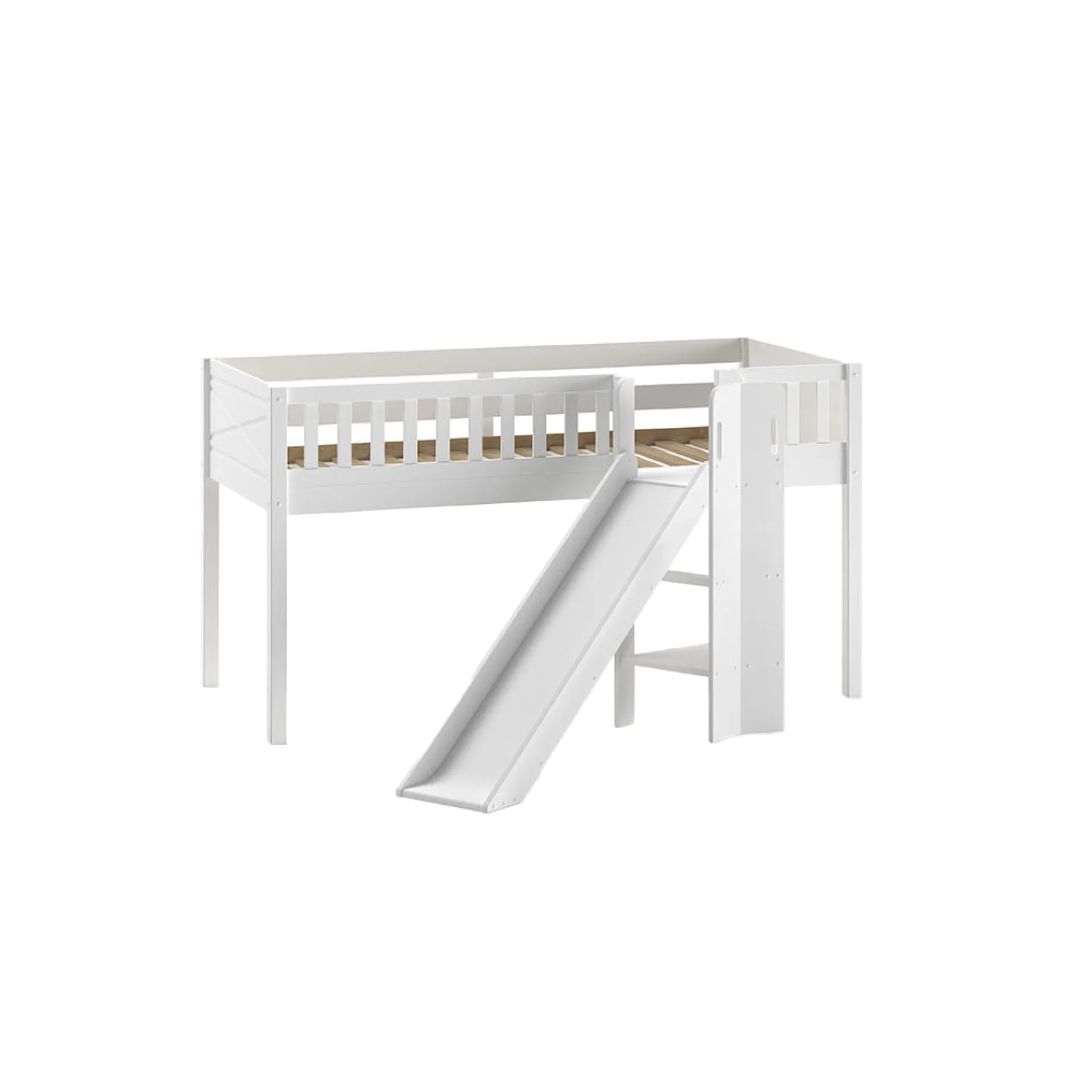 Deze leuke half hoogslaper is gemaakt van Scandinavisch grenen gecombineerd met MDF en is afgewerkt met een sterke lak. De ladder en glijbaan kunnen zowel links als rechts gemonteerd worden. De lattenbodem wordt meegeleverd, in dit bed past een matras van 90×200 cm. Maximaal toelaatbare gewicht per slaapplaats is 50KG. Gemakkelijk te monteren door middel van bijgeleverde montagehandleiding. Bekijk ook de rest van deze collectie voor bijpassende items!