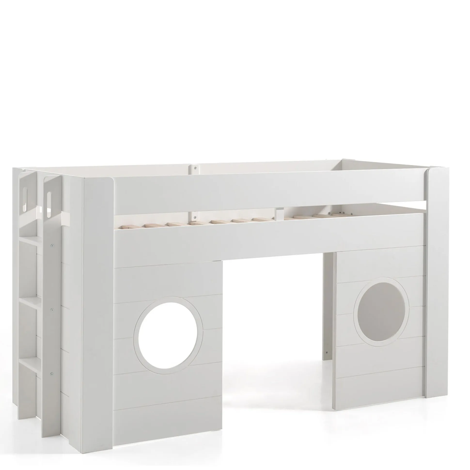 Deze halfhoogslaperis een kwalitatief hoogwaardig product want deze heeft heeft een romp en fronten van wit gelakt MDF. Bij deze halfhoogslaper is de lattenbodem ingebgrepen.