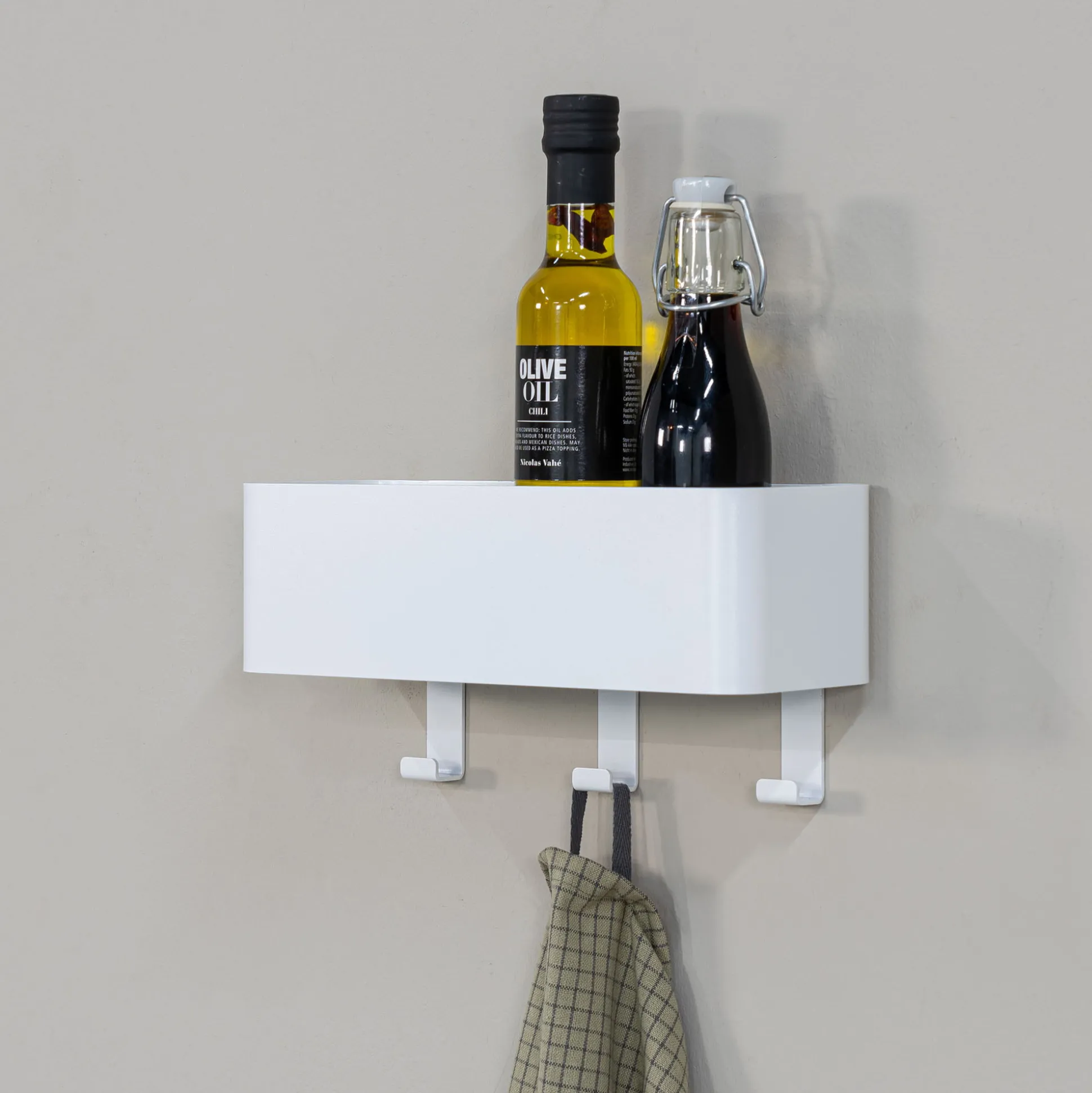 Optimaliseer je ruimte met de Kapstok Alfie Wit 3-haaks – een buitengewoon veelzijdige wandplank en kapstok in één!