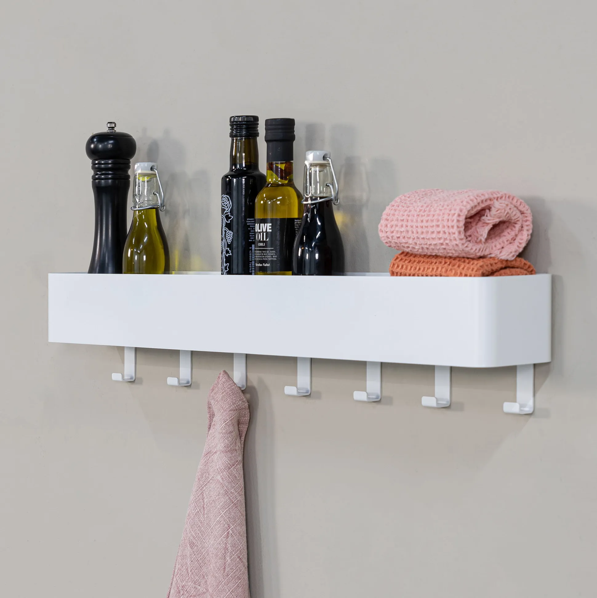 Optimaliseer je ruimte met de Kapstok Alfie Wit 7-haaks – een buitengewoon veelzijdige wandplank en kapstok in één!