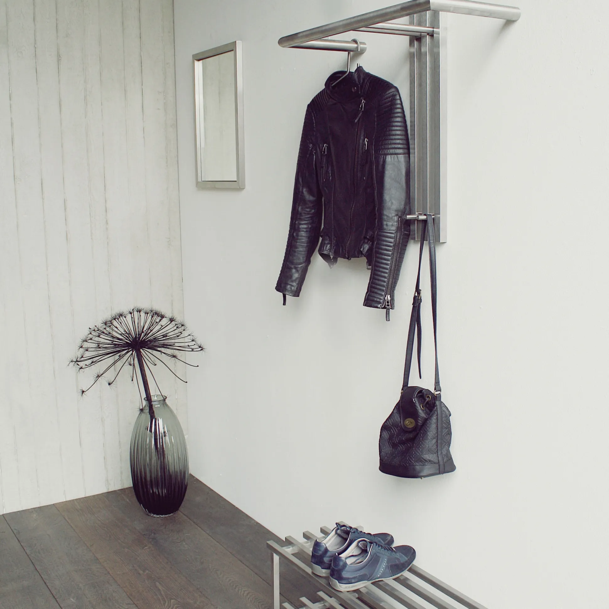 Deze kapstok is vervaardigd uit een prima kwaliteit RVS en is een juweeltje in je hal. Prima te kombineren met o.a. spiegel Bente.
