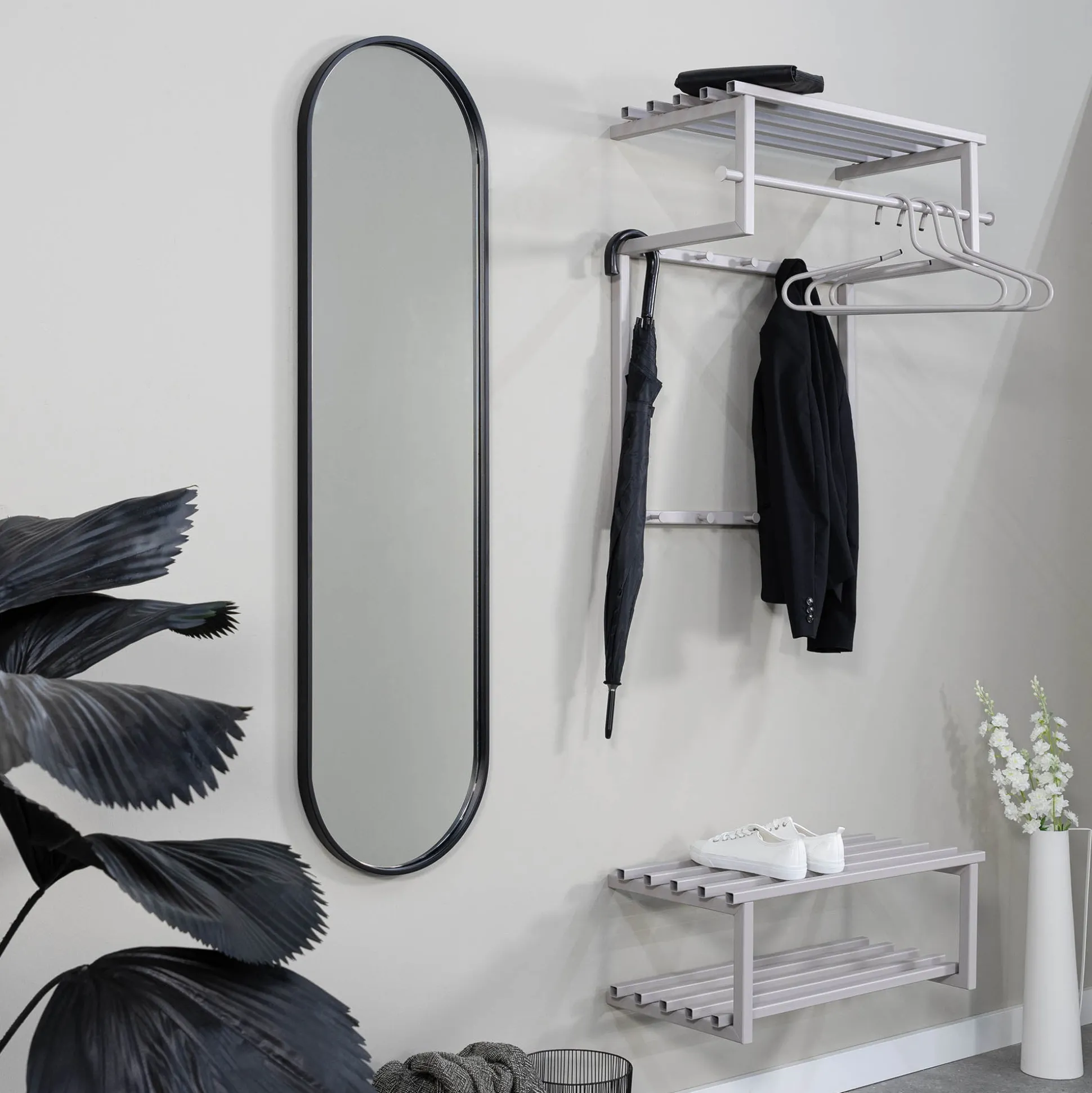 Met deze zeer stevige kapstok ben je verzekerd van een lange levensduur, volledig vervaardigd van sterk staal afgewerkt met een stevige poedercoating. Voldoende ruimte voor alle jassen, tassen en sjaals aan één van de 10 haken of aan een kledinghanger op de kledingroede. Bovenop voldoende ruimte voor petten en/of hoeden. Ook handig voor kleine kinderen die zelf hun jas op kunnen hangen. Leuk te combineren met de andere artikelen uit deze serie.