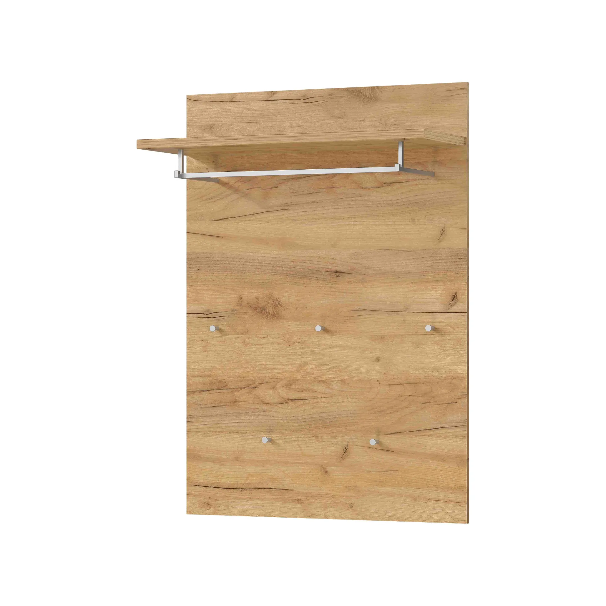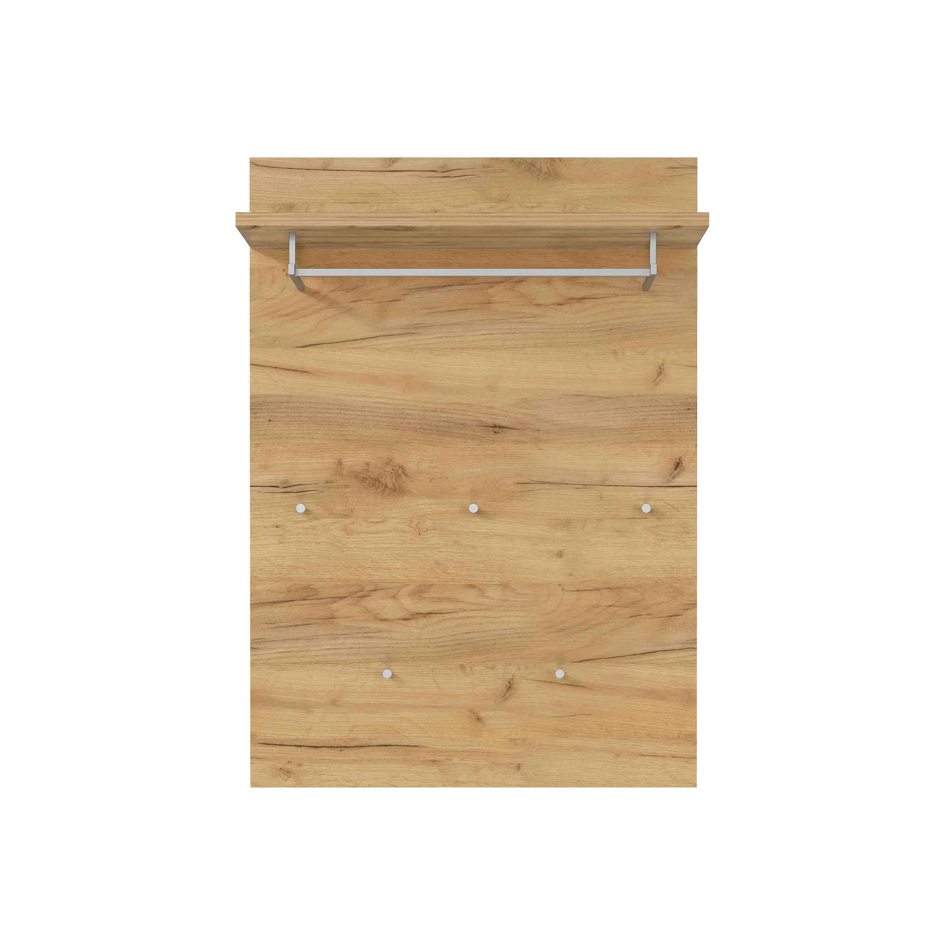 Stijlvol kapstokpaneel met een warme uitstraling. De kledingroede en haken zijn uitgevoerd in een zilvergrijs metaal. Boven de kledingroede een plank voor het wegleggen van hoofddeksels. Gemakkelijk te monteren door middel van de bijgeleverde montagehandleiding. Bekijk ook de andere producten uit deze serie!
