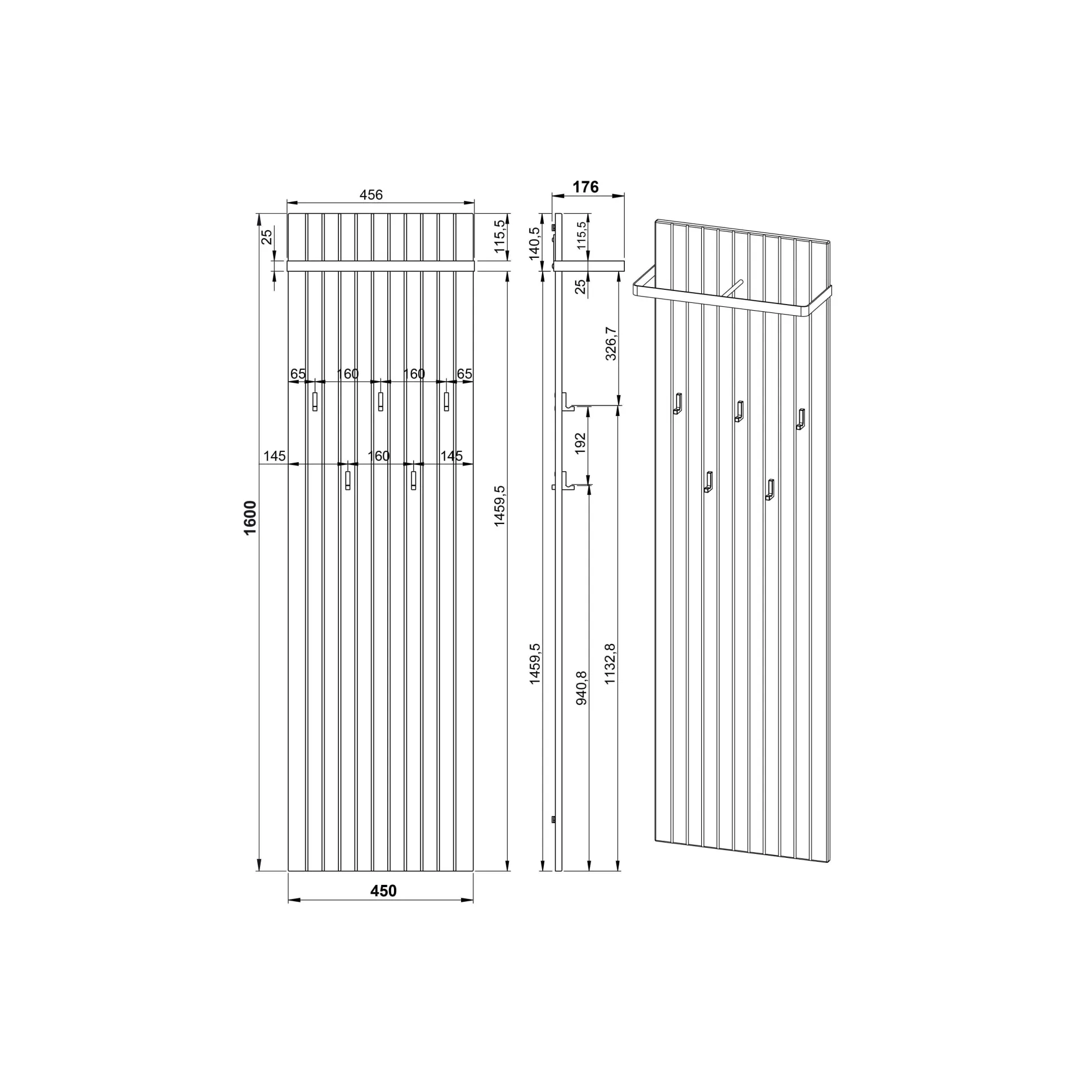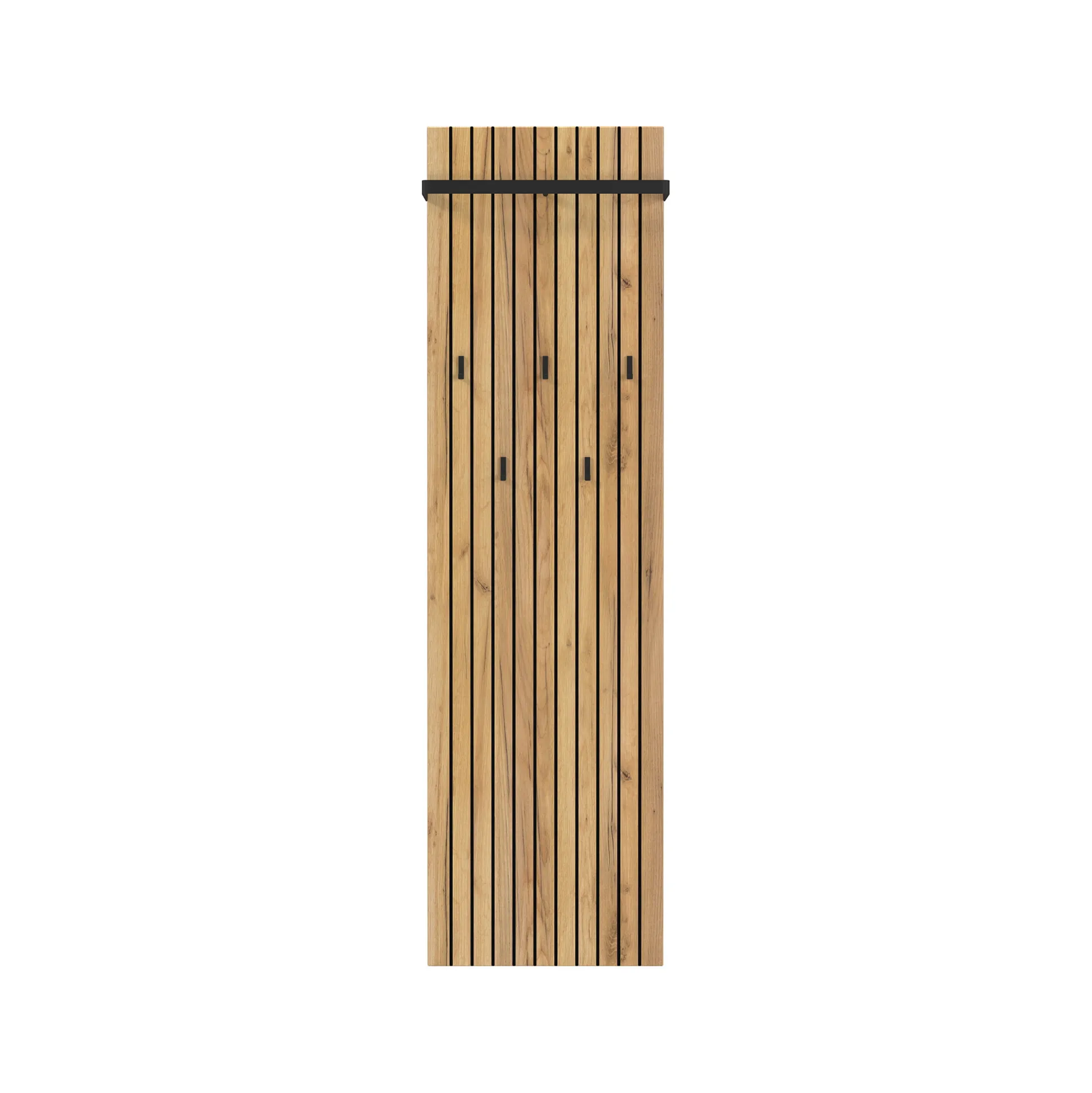 Dit kapstokpaneel biedt een elegante en praktische opbergoplossing voor jassen en accessoires, ideaal voor smalle gangen of compacte ruimtes.