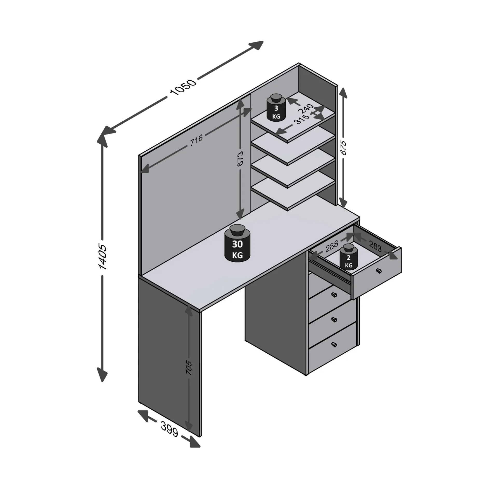 De kaptafel Emilia in wit straalt elegantie uit en is de perfecte toevoeging aan een slaapkamer of kleedruimte. Met ruime opbergruimte en een stijlvol design biedt deze kaptafel zowel praktisch gebruik als een luxe uitstraling.