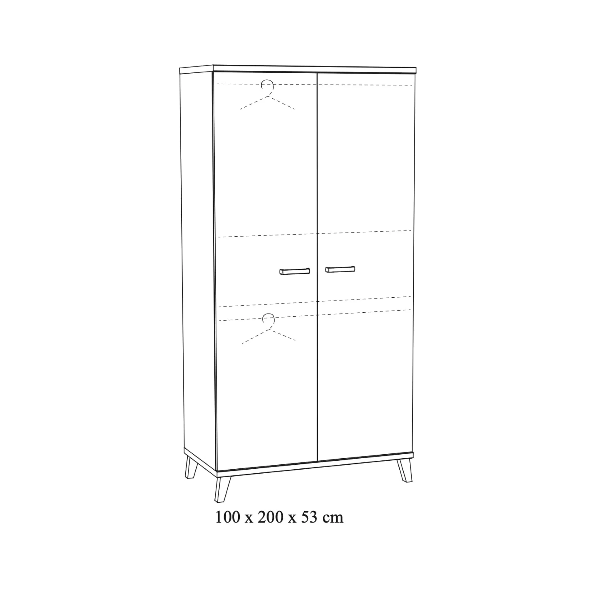 De Kledingkast Finn 2-deurs Eiken is een ruime en functionele toevoeging aan de babykamer. Met afmetingen van 100x200x53 cm biedt deze kast voldoende opbergruimte voor kleding, accessoires en andere benodigdheden.