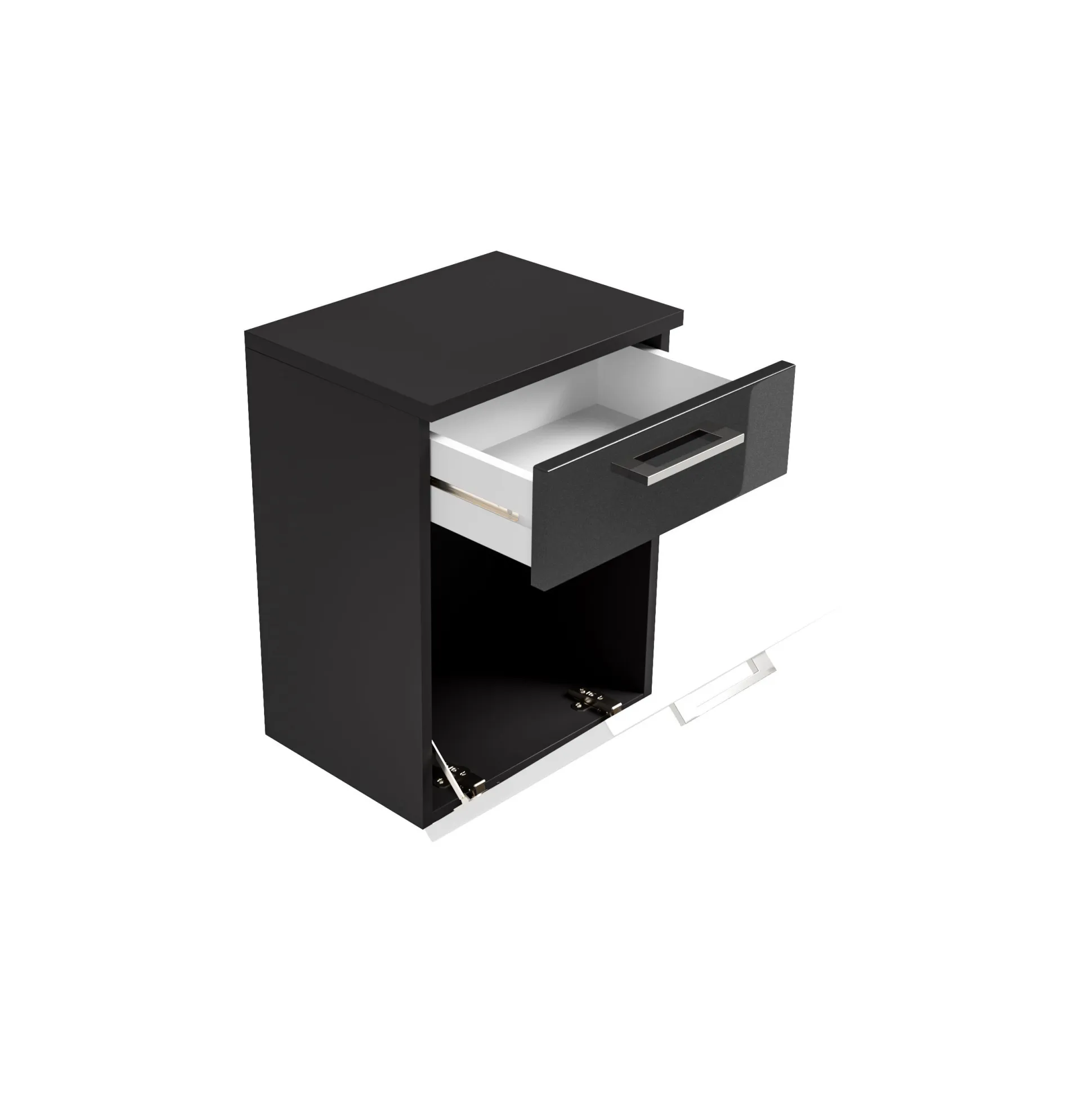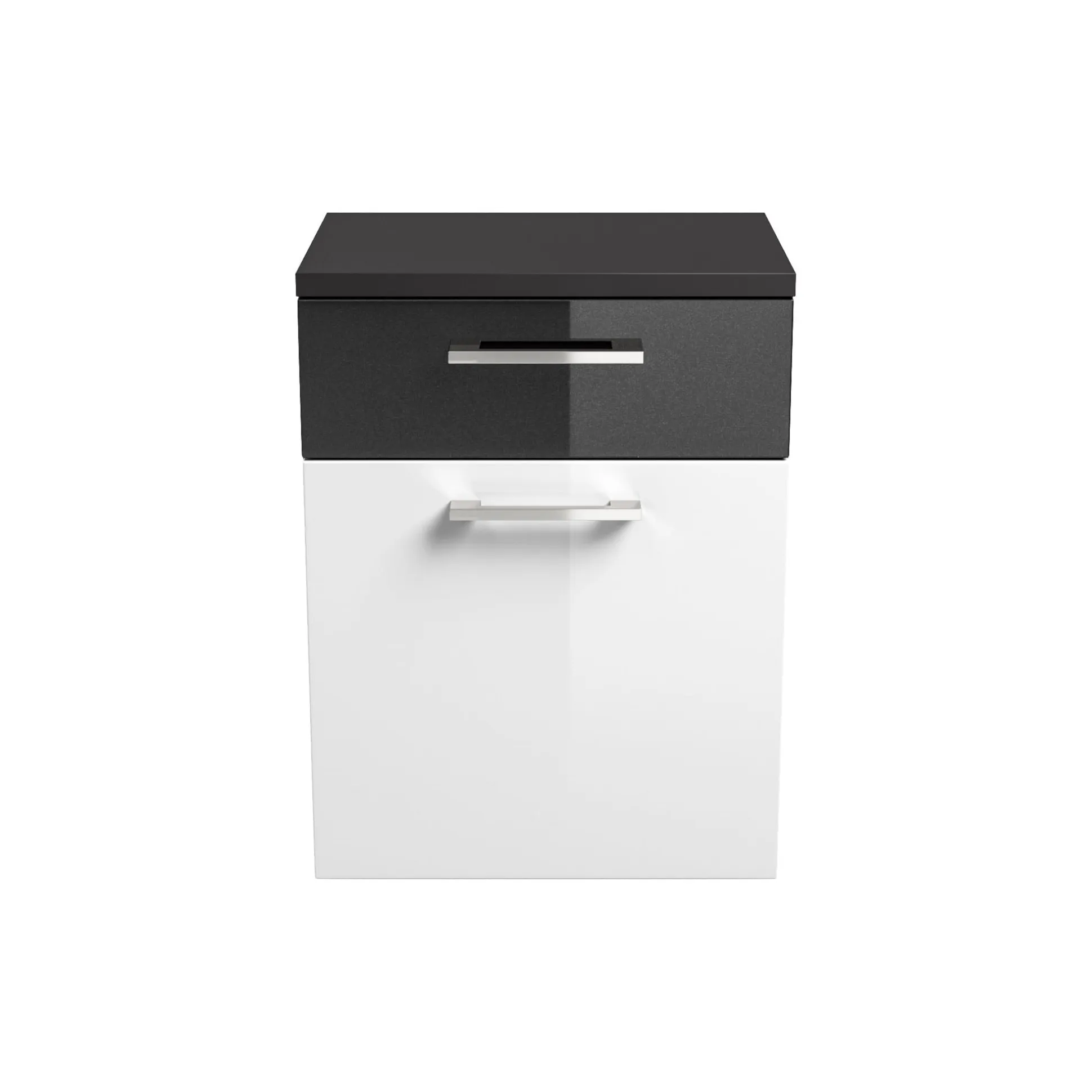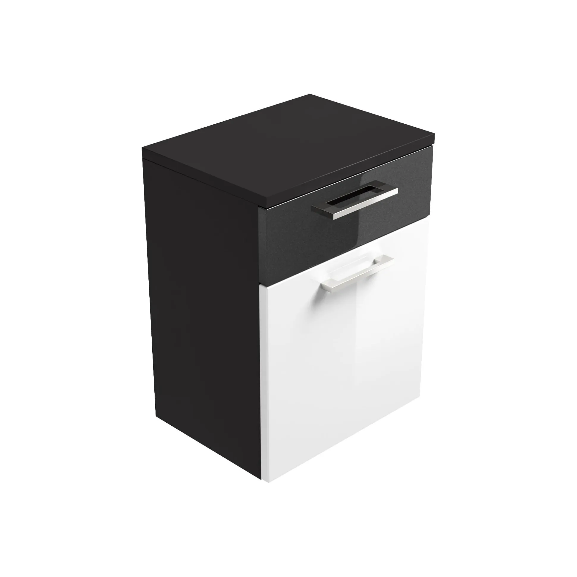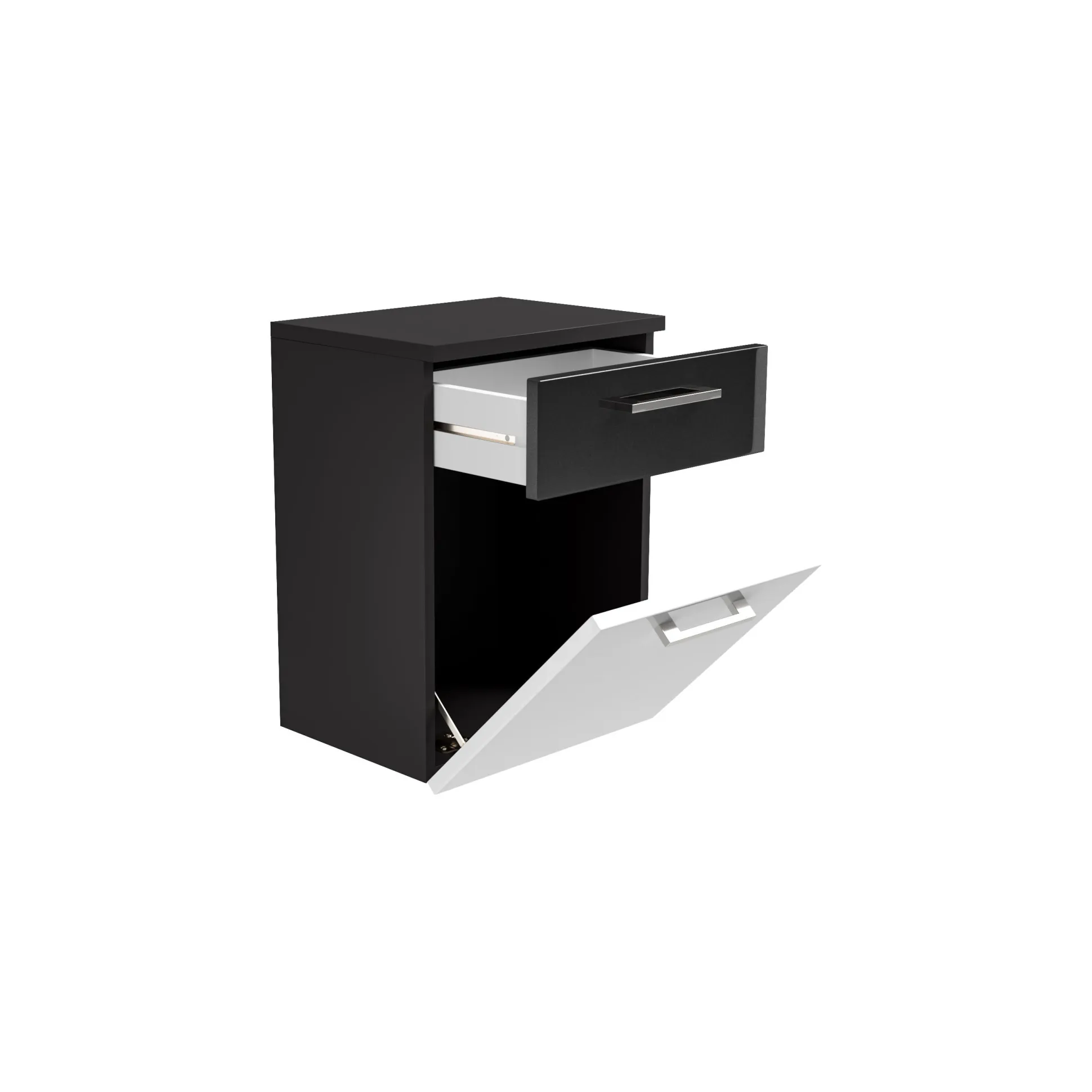 Deze stijlvolle badkamerkast heeft hoogglans spaanplaat-fronten gecombineerd met metalen hangrepen. Geruisloze sluiting van deuren, laden en kleppen dankzij het soft-close systeem. Gemakkelijk te plaatsen naast het bad meubel voor extra opbergruimte. Achter de klep voldoende opbergruimte voor schone handdoeken. Door zijn melamine afwerking is deze badkamerkast beter schoon te houden en langer beschermd tegen stof en vuil. Gemakkelijk te monteren door middel van bijgeleverde montagehandleiding. Bekijk ook de andere elementen uit deze serie!
