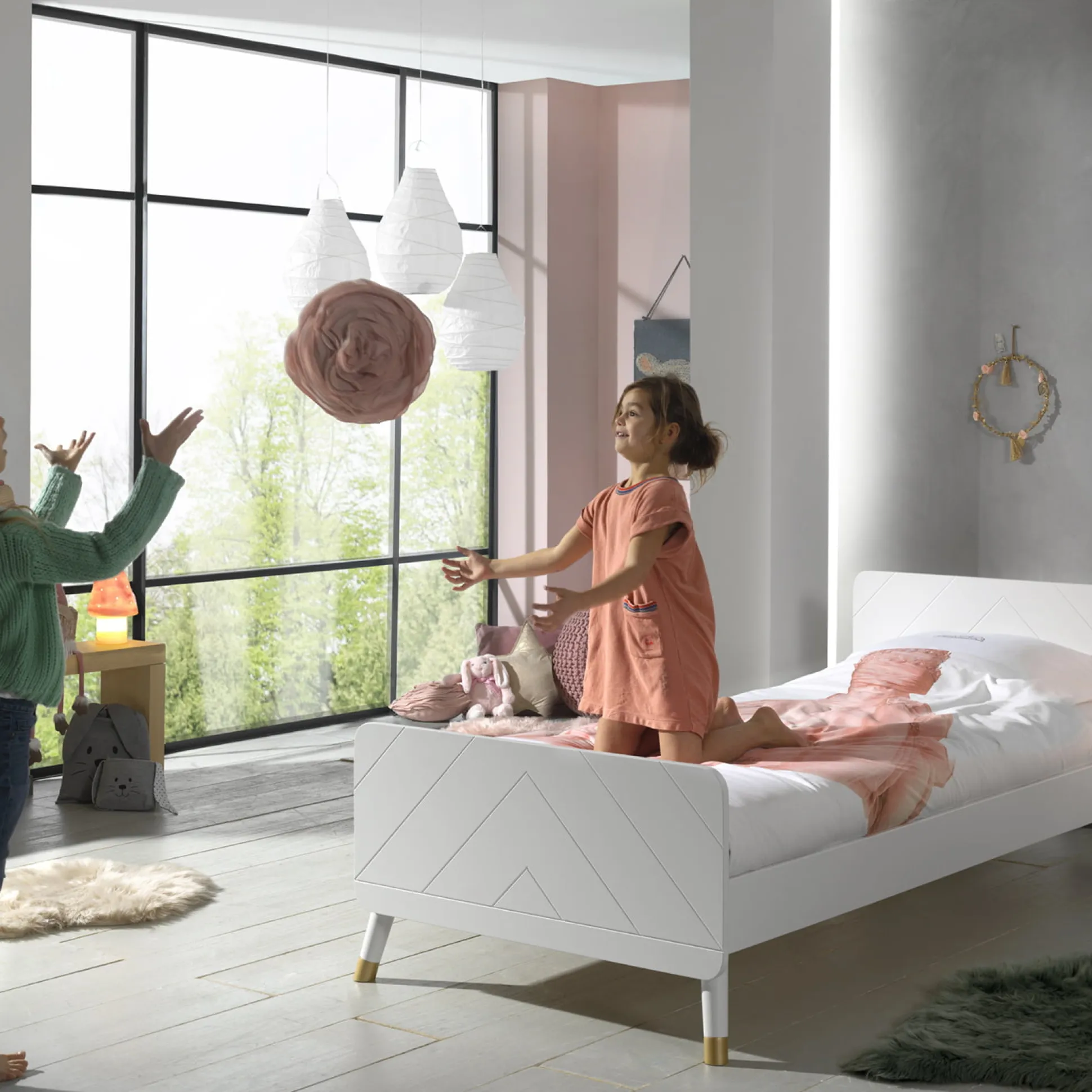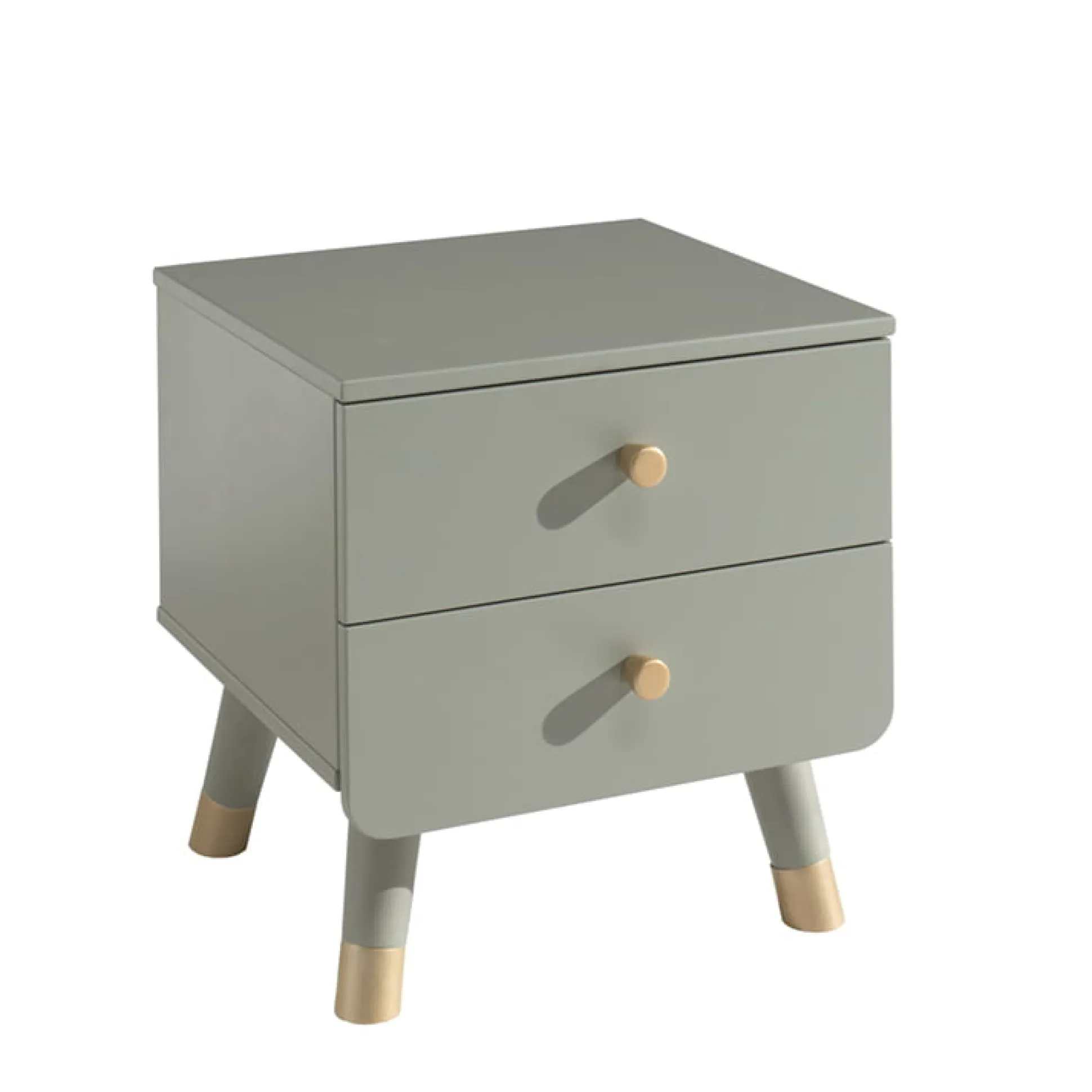 Het nachtkastje heeft 2 laden en is gemaakt van MDF.