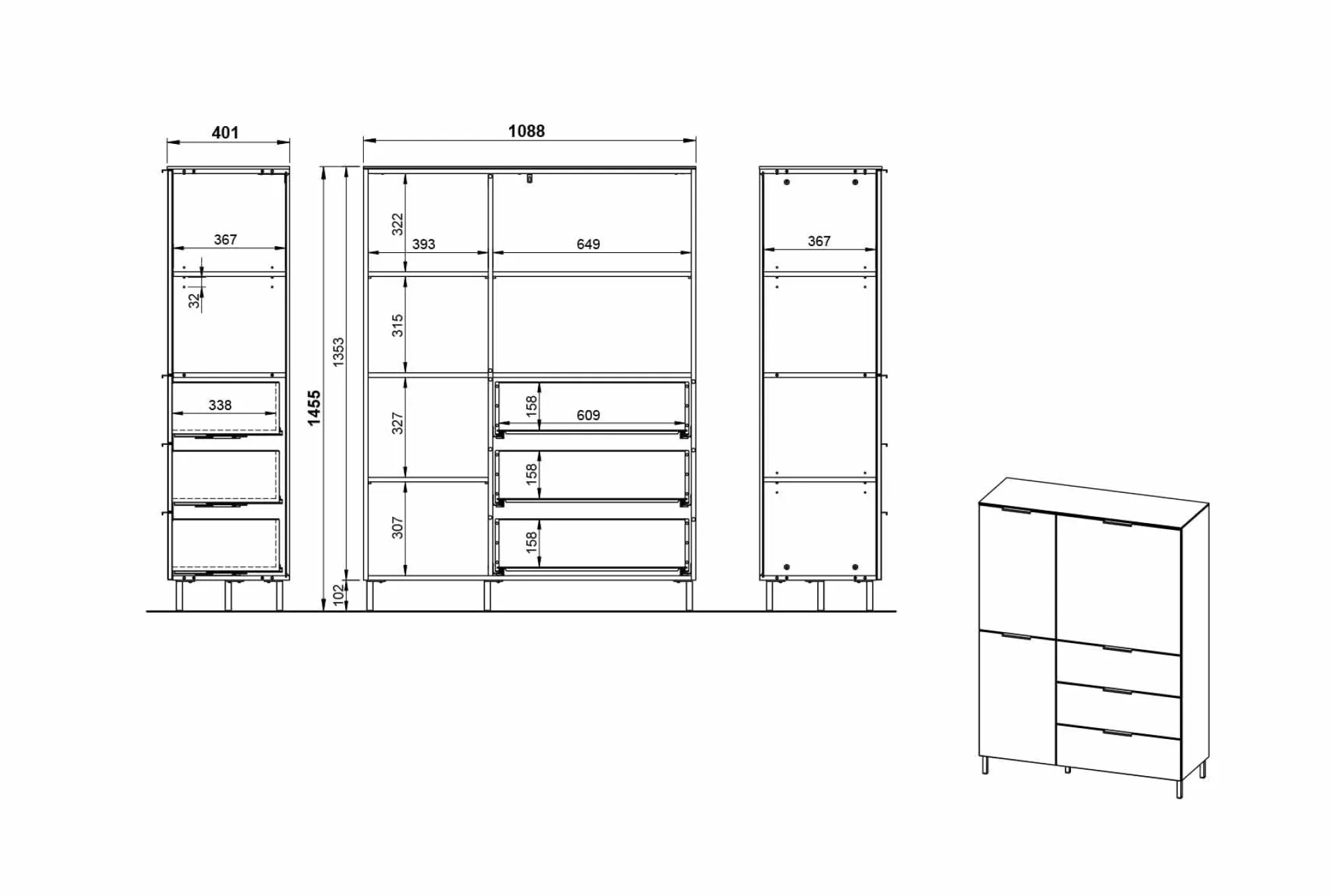 Deze kast heeft meer dan genoeg opbergruimte. De kast heeft drie deuren, met achter elke deur drie opbergplanken. Rechtsonder bevinden zich ook nog drie laden om spullen in op te bergen. Deze ruime opbergkast is goed te combineren met de andere meubels uit de serie Amalfi. Het meubel wordt geleverd met zowel de hoge als de lage pootjes.