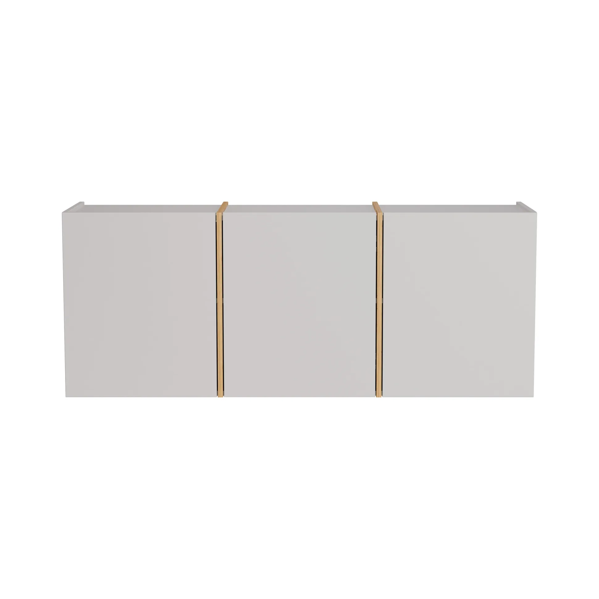 Deze compacte opbergkast in kasjmier met Navarra eiken accenten is ideaal voor smalle gangen en kleine ruimtes. De kast heeft drie deuren met daarachter twee middenpanelen en drie verstelbare planken die elk tot 7 kg kunnen dragen. De bovenste planken kunnen tot 15 kg dragen en de onderste planken tot 7 kg. Dankzij de ondiepe diepte van 29 cm past deze kast perfect in smalle gangen, terwijl er voldoende opbergruimte is voor schoenen, accessoires of andere huishoudelijke items.