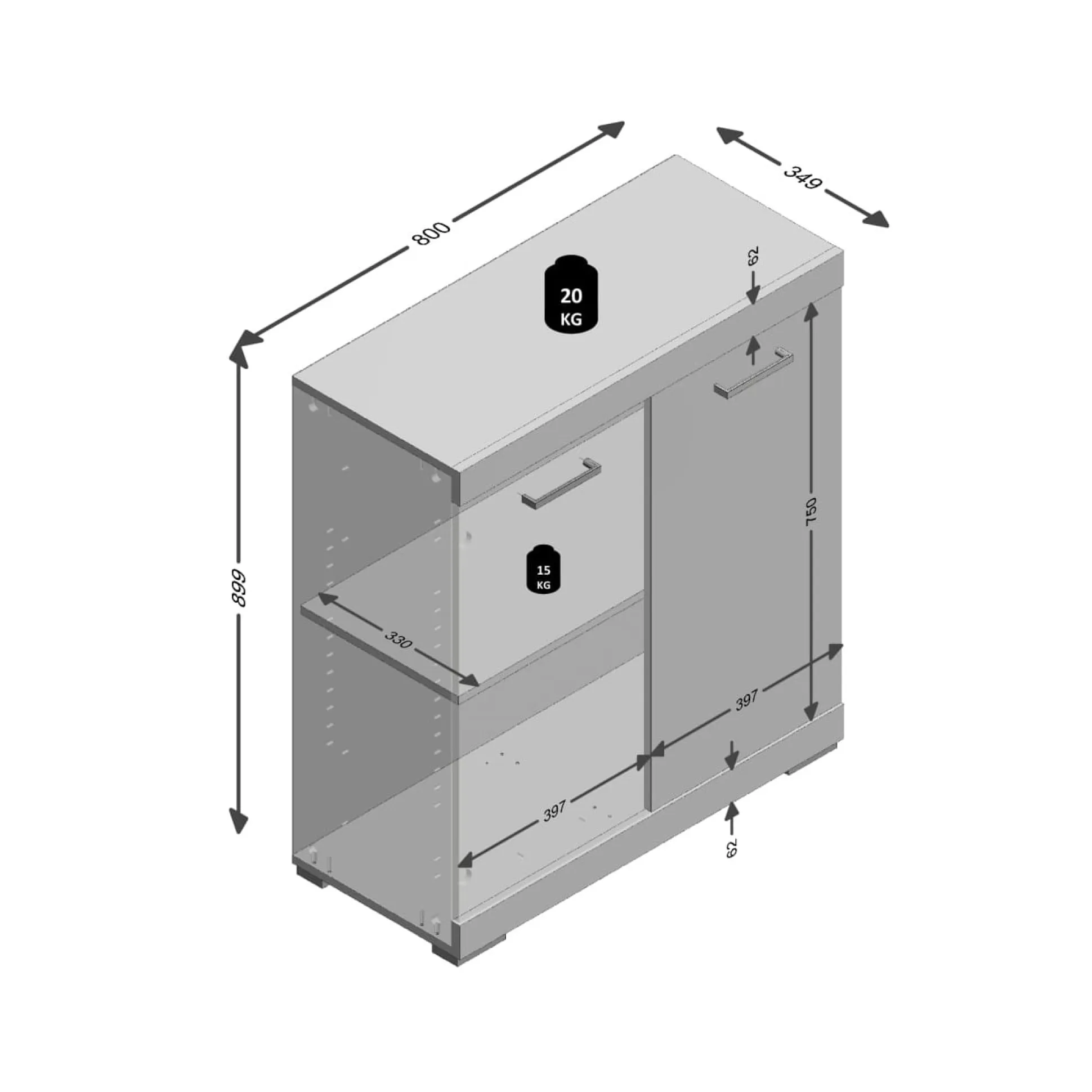 Deze handige opbergkast kun je dankzij zijn handige afmetingen gemakkelijk kwijt in je woonkamer, kantoor of keuken. Achter de deuren bevindt zich 1 verstelbare legplank, hierdoor heb je voldoende opbergruimte. Bovenop de kast kun je nog enkele leuke accessoires kwijt. Deze kast is vervaardigd uit een stevige spaanplaat en afgewerkt met een sterke melamine. Eenvoudig te monteren door middel van de bijgeleverde montagehandleiding. Bekijk ook de bijpassende artikelen uit deze serie!
