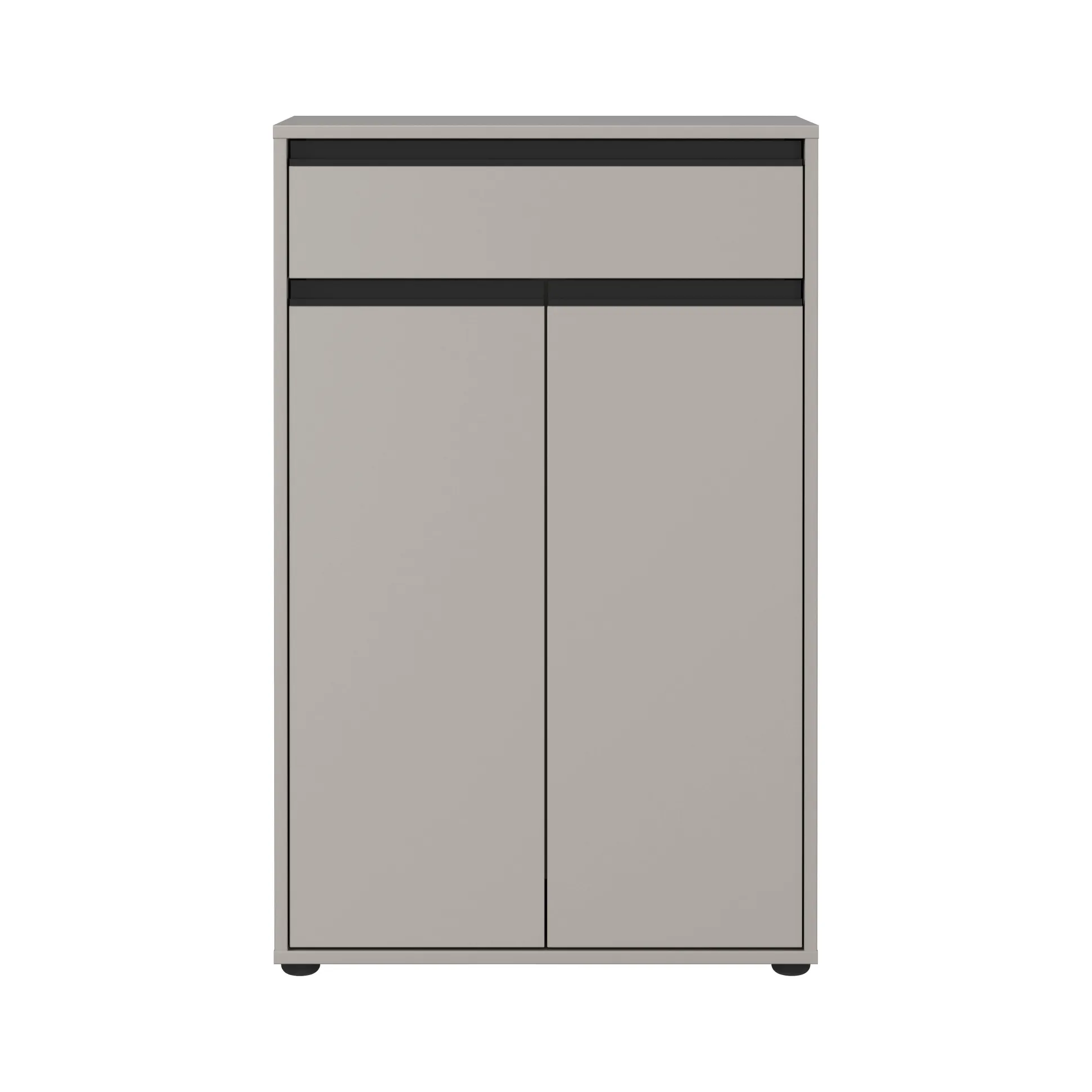 De opbergkast Pula Lichtgrijs 63 cm is een veelzijdig meubelstuk met een lade, twee deuren en twee verstelbare planken. De lade kan tot 10 kg dragen, terwijl de planken elk belastbaar zijn tot 10 kg. De bovenste plank is geschikt voor een gewicht tot 5 kg, terwijl de onderste plank tot 10 kg kan dragen. De kast heeft drie zwarte metalen handgrepen en vier stevige kunststof meubelglijders. Dankzij de krasbestendige melamine coating en de stootvaste ABS-randen blijft het meubel er langdurig netjes uitzien. De deuren en lade sluiten zachtjes en geruisloos dankzij de geïntegreerde demping.