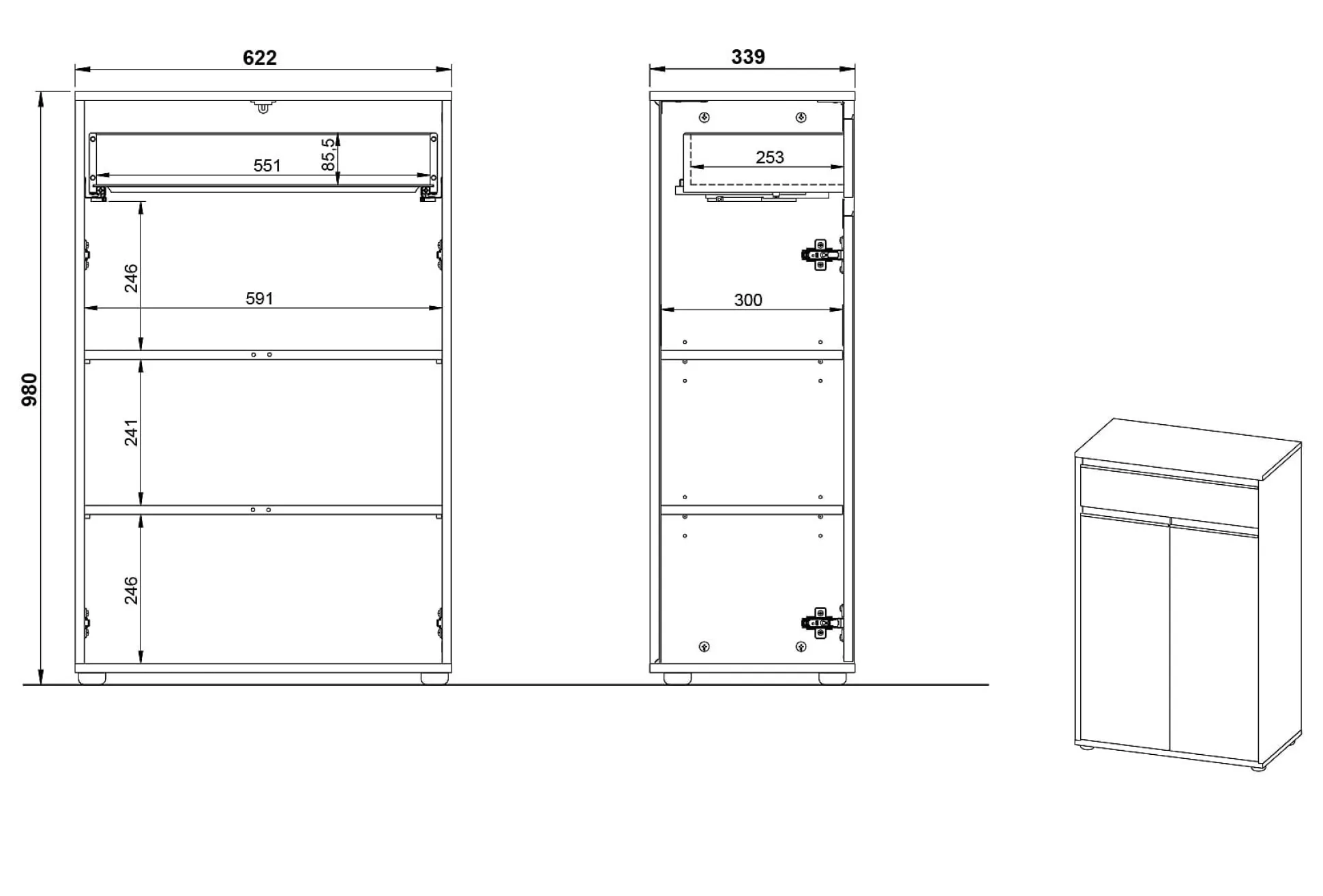 - Afmetingen: 63 x 98 x 34 cm (B x H x D)