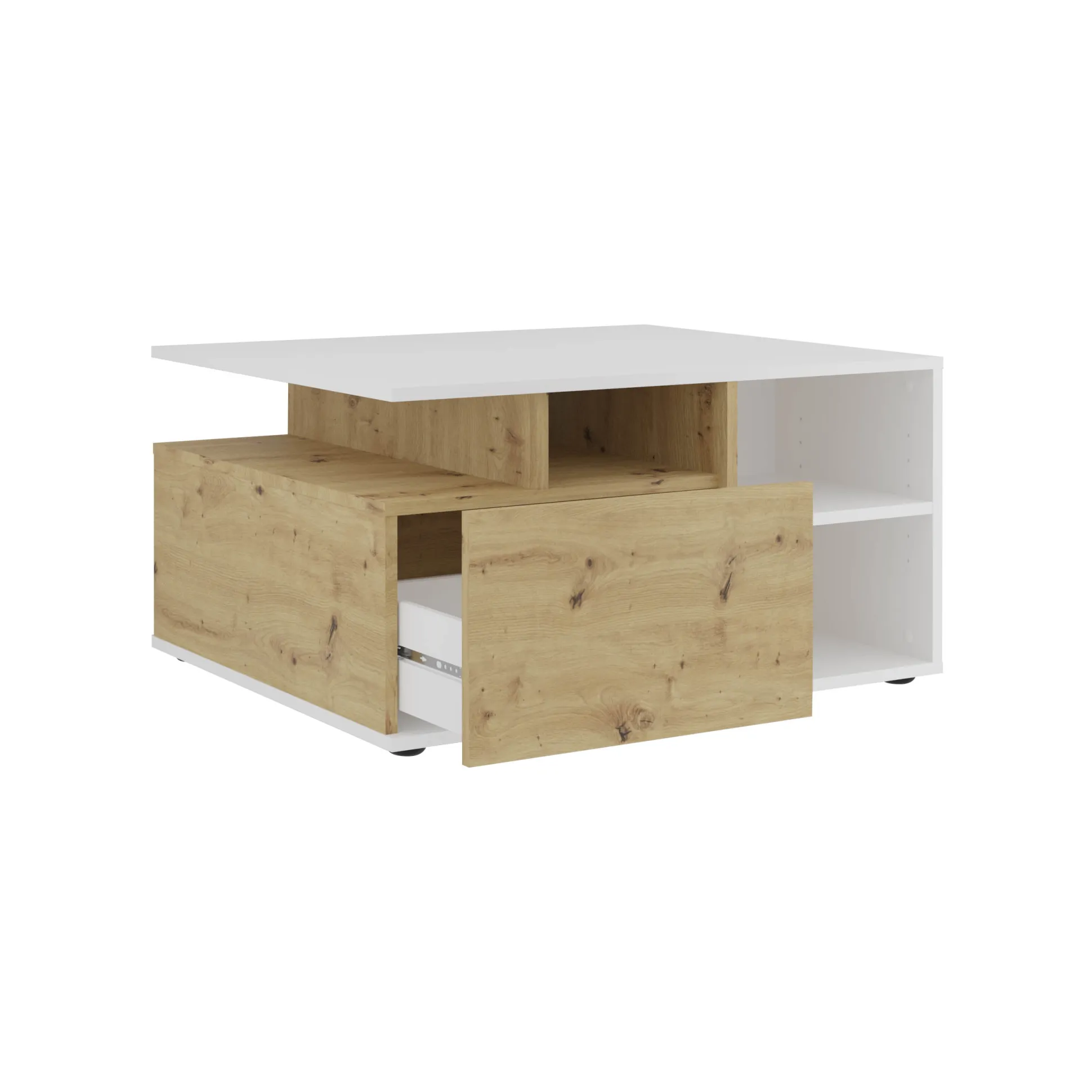 De salontafel Jose in wit en artisan eiken is een moderne en tijdloze keuze voor je woonkamer. Met een ruim tafelblad en een stevige constructie biedt deze tafel zowel stijl als functionaliteit.