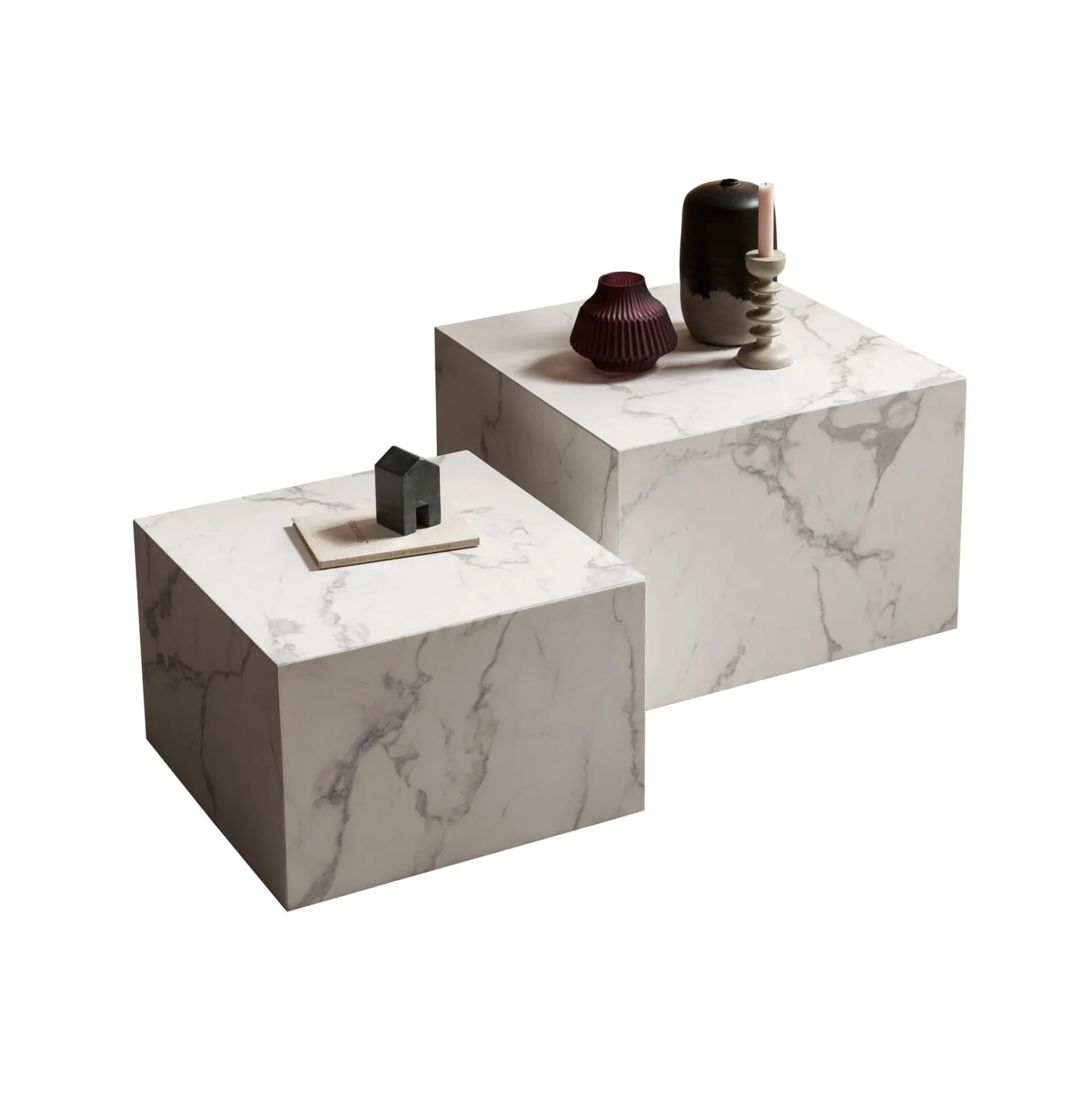 Deze leuke salontafel set is vervaardigd uit een stevige MDF en afgewerkt met sterke melamine. De grote salontafel heeft als afmetingen: 58x58x40 (BxDxH) centimeter, de kleine salontafel heeft als afmetingen: 50x50x33 (BxDxH) centimeter. Een echte eyecatcher voor in je interieur!