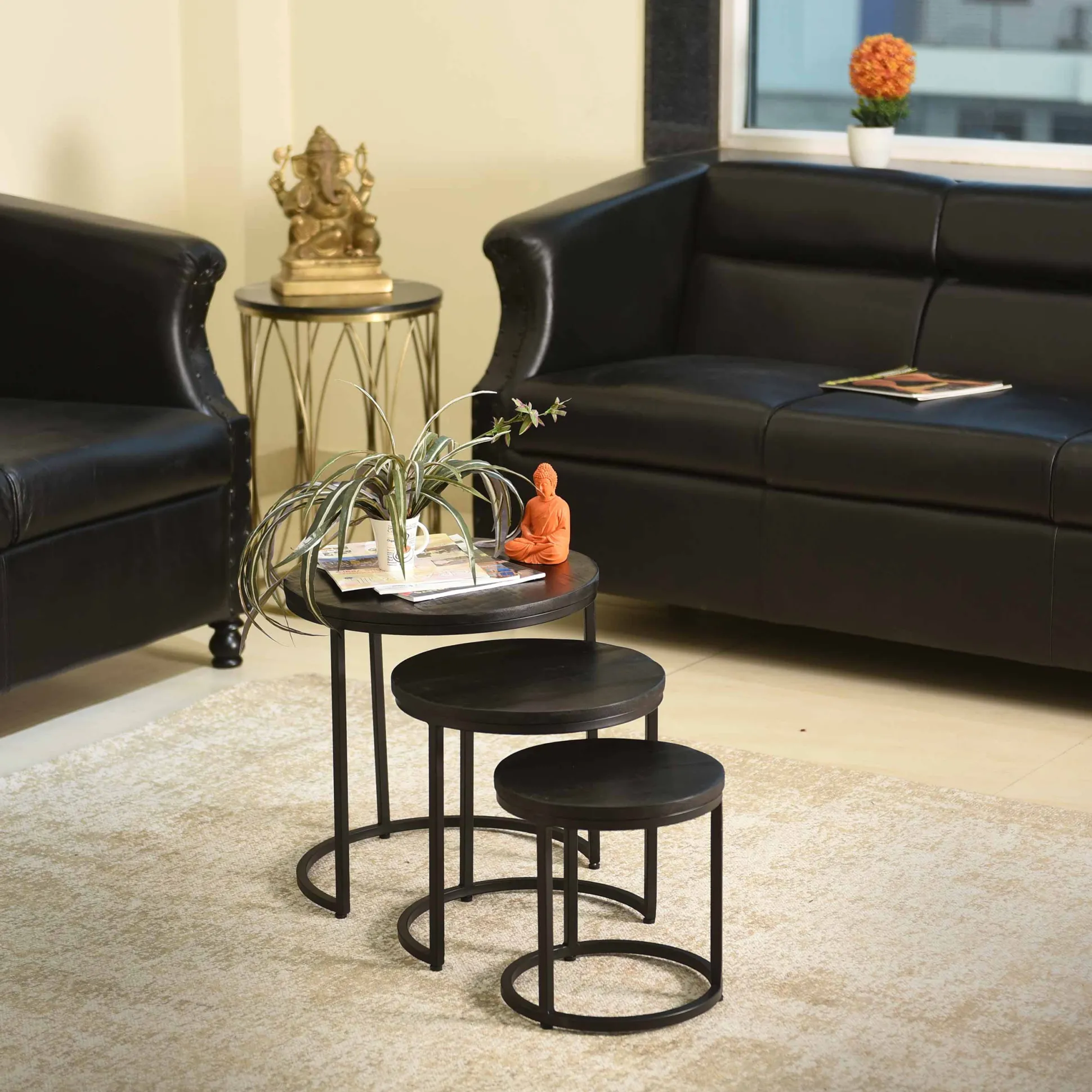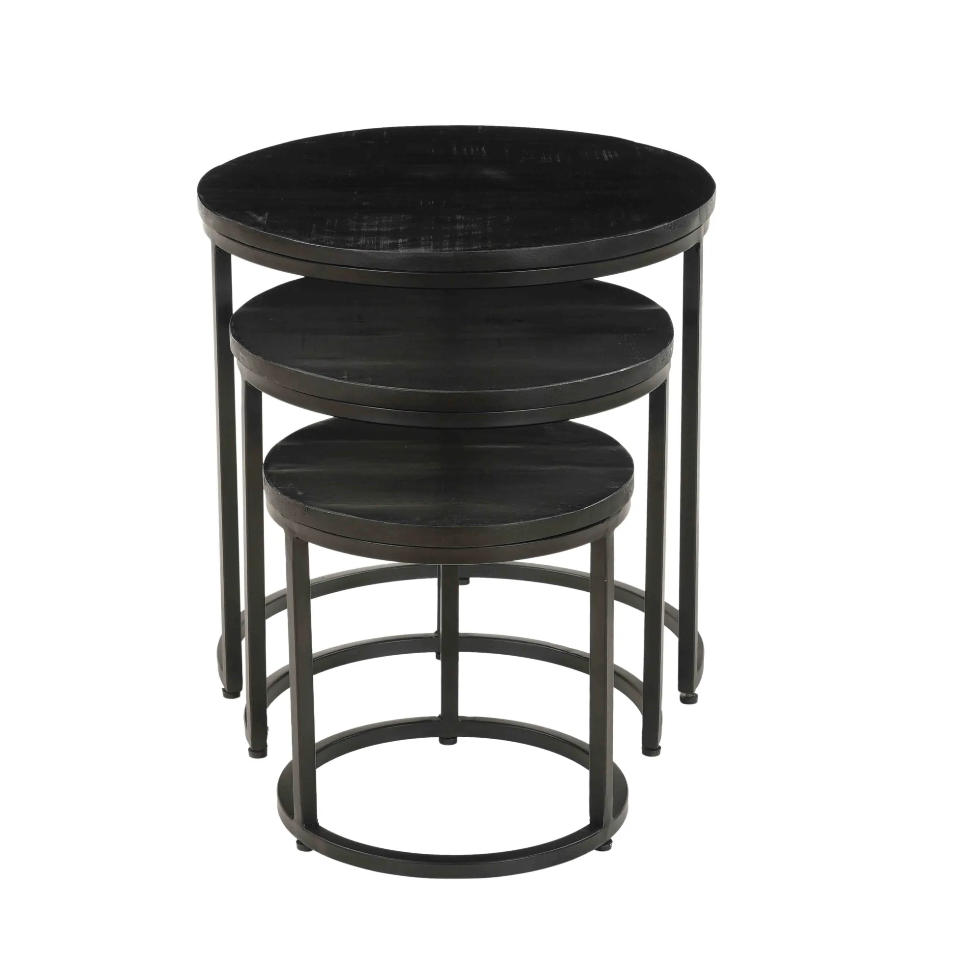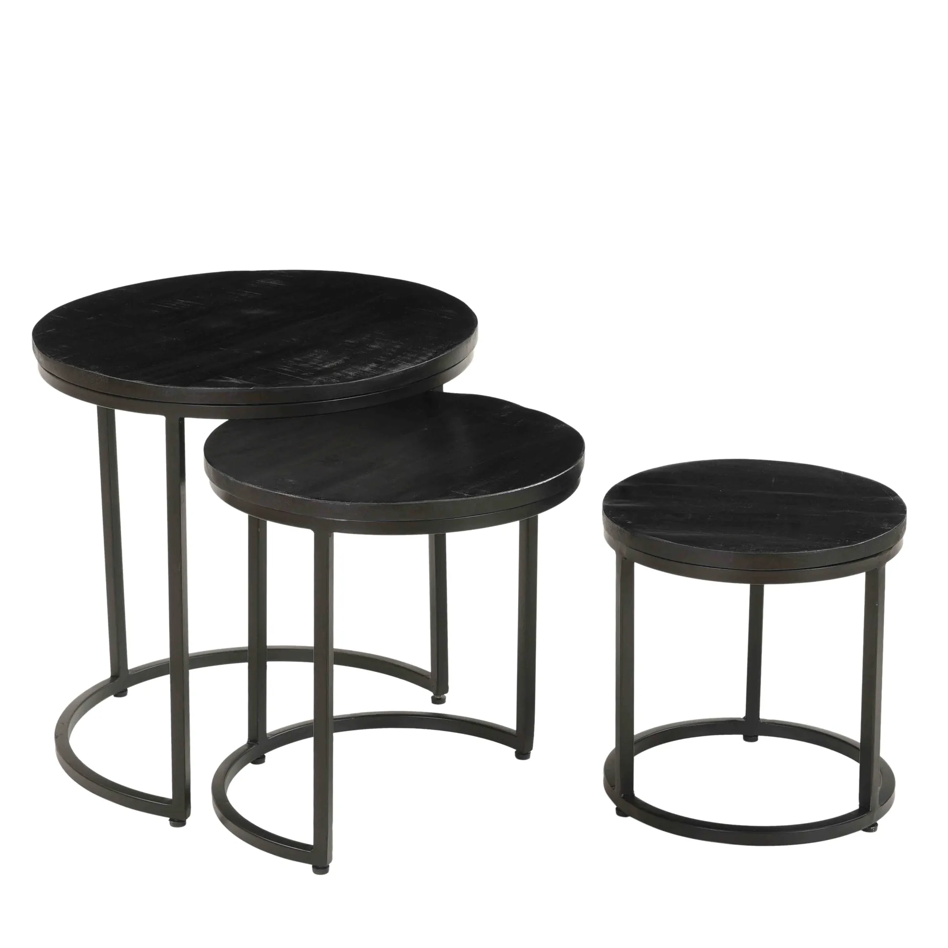 Deze salontafel set kenmerkt zich door zijn ronde vormen en eenvoud. Het blad is gemaakt van magnolia hout en het onderstel is van zwart metaal. Door de verschillende afmetingen kun je deze tafels onder elkaar zetten maar ook gebruiken als bijzettafel. Verkrijgbaar in meerdere uitvoeringen. De tafels hebben de volgende afmetingen: