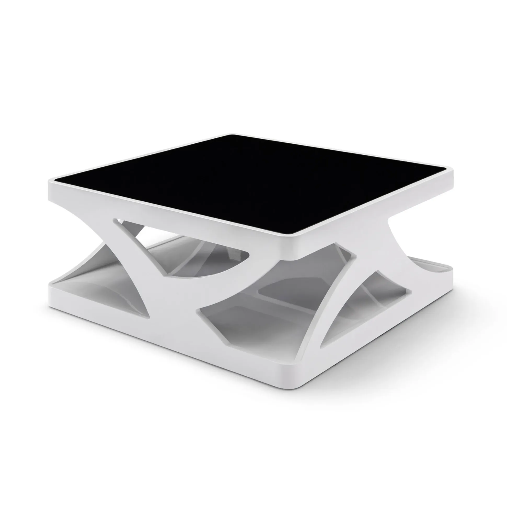 Deze salontafel is vervaardigd uit een sterke MDF en afgewerkt in hoogglans. Het tafelblad is 10mm dik veiligheidsglas. Een echte eyecatcher voor in je interieur!