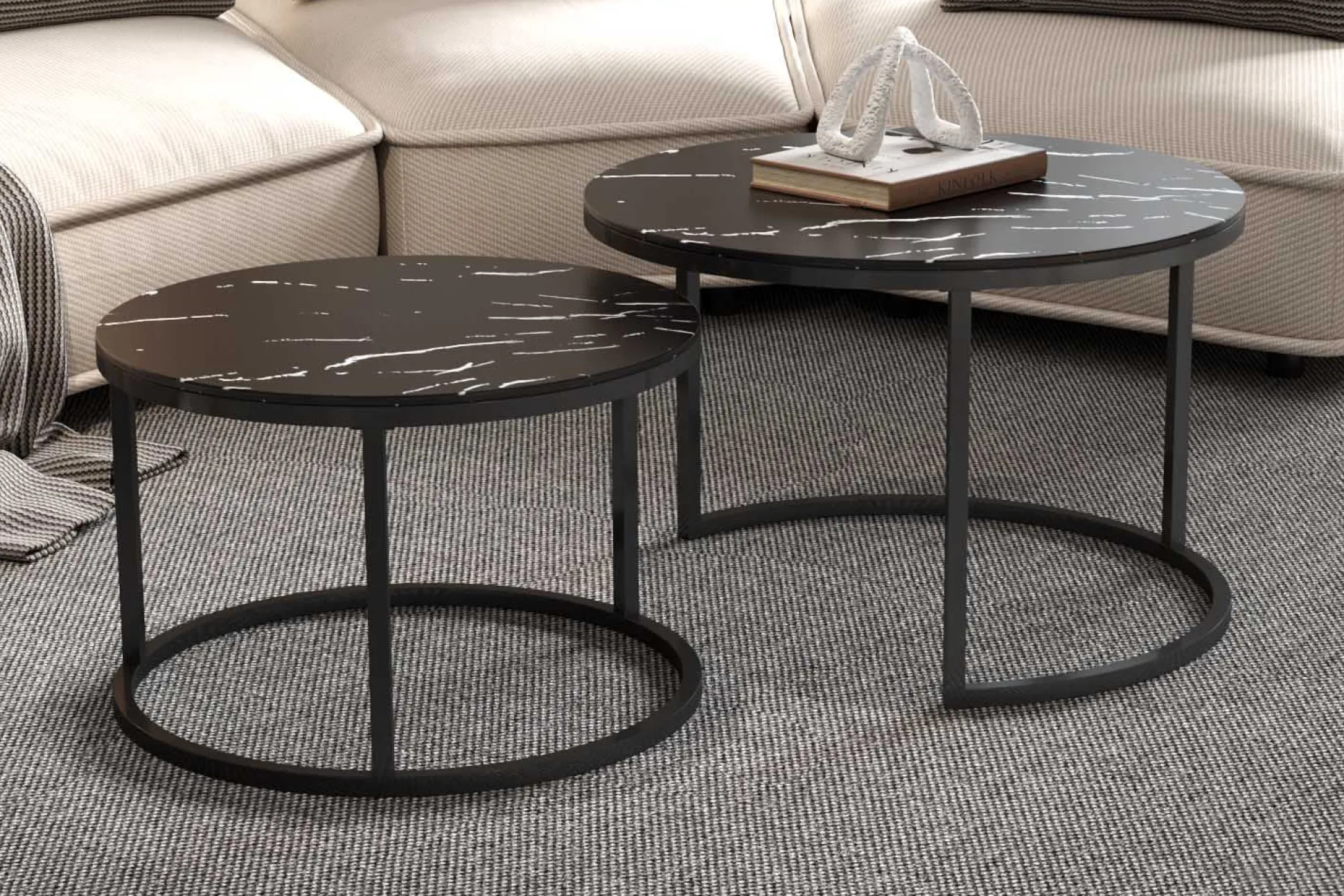 Ervaar ultiem comfort en stijl met de salontafelset Fréderique in zwart marmerlook!