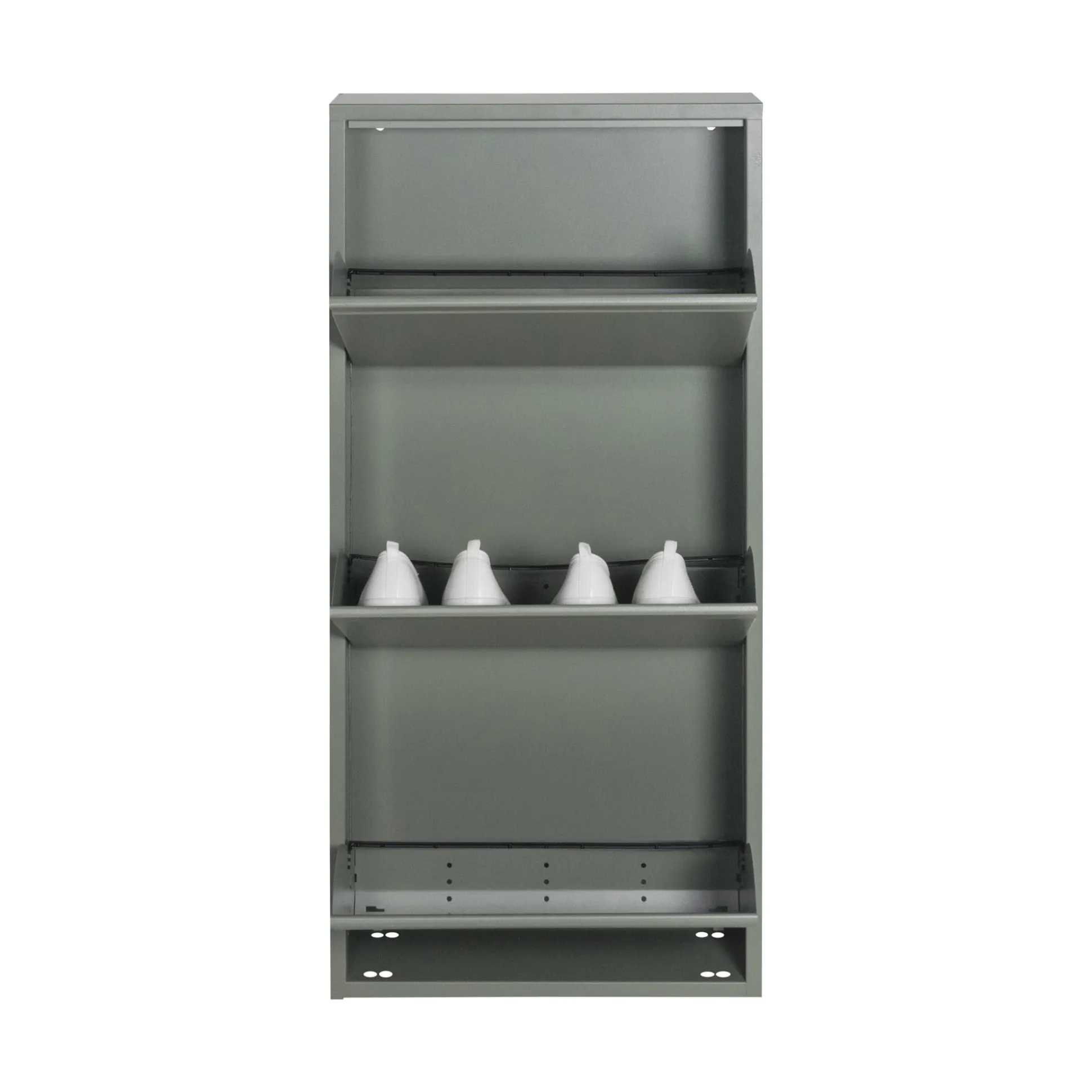 Deze trendy schoenenkast uit de collectie Oscar is geproduceerd van hoogwaardigroestvrij staal en is afgewerkt met een mooie poedercoating. U kunt de kast door middel van kleppen netjes afsluiten. In de kast is plaats voor 9 paar schoenen. De schoenenkast is verkrijgbaar in de kleuren zwart, wit en groen.
