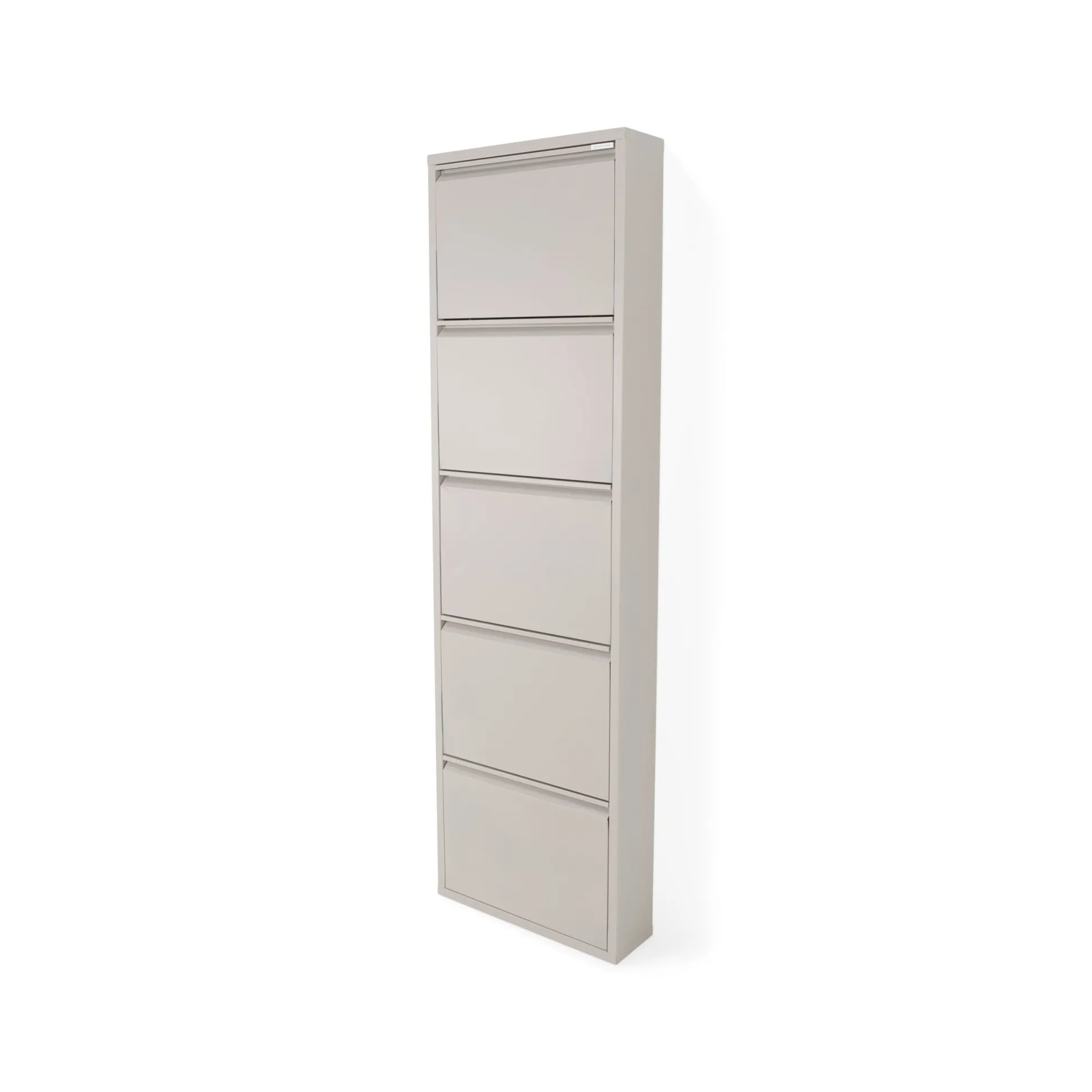 Deze trendy schoenenkast uit de collectie Oscar is geproduceerd van hoogwaardigroestvrij staal en is afgewerkt met een mooie poedercoating. U kunt de kast door middel van vijf kleppen netjes afsluiten. In de kast is plaats voor 15 paar schoenen. De schoenenkast is verkrijgbaar in meerdere kleuren en uitvoeringen.