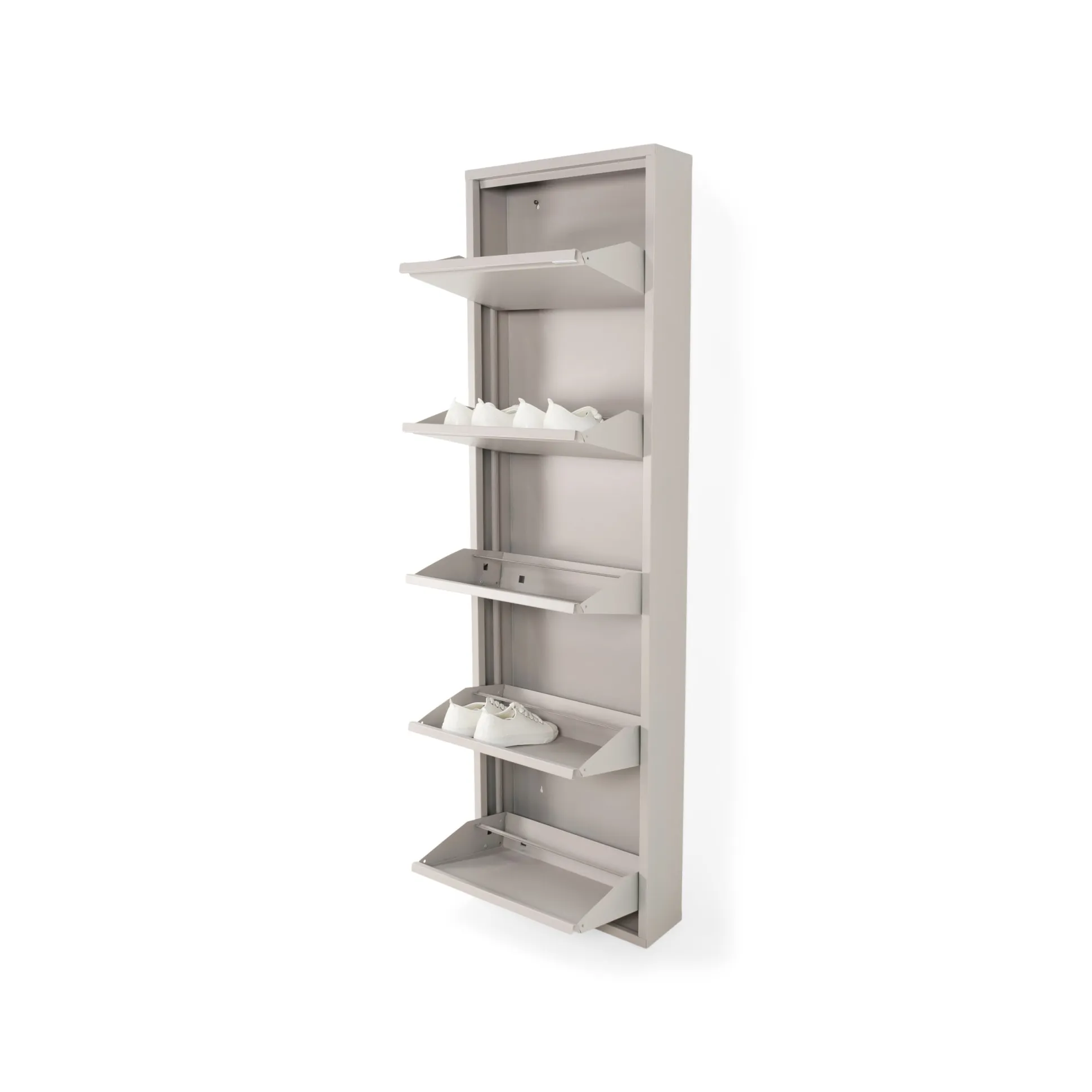 De schoenenkasten uit de serie Oscar geven uw hal een moderne, industriële en trendy uitstraling! De schoenenkasten zijn gemaakt van hoogwaardig roestvrijstaal en is afgewerkt met een poedercoating. Het is mogelijk de schoenenkasten op te hangen aan de muur, maar ook om de kast onafhankelijk op de vloer te plaatsen. Doordat een gang of hal doorgaans niet erg groot is, is er rekening gehouden met de diepte van de kasten. Zo is het gemakkelijker om er toch een mooi plekje te vinden.