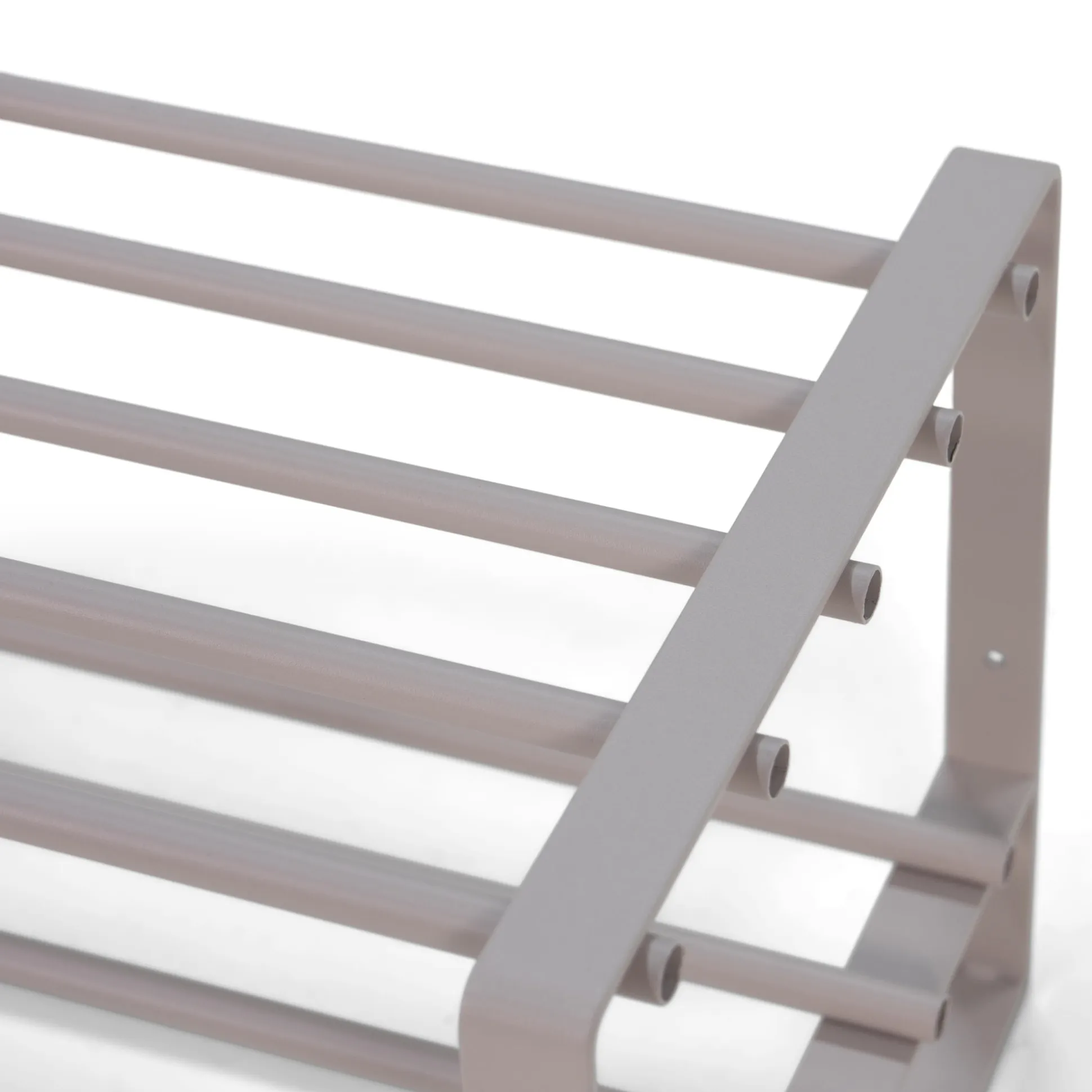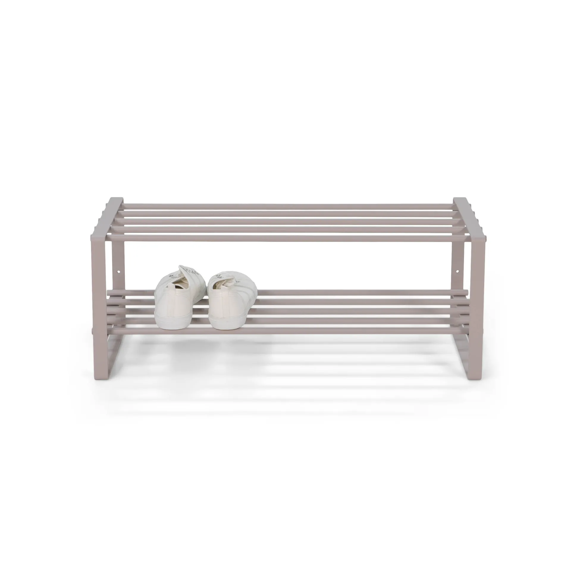 Dit schoenenrek met open zijden heeft boven en onder 5 stevige stangen, waarop gemakkelijk meerdere paren schoenen hun plaats vinden. Het schoenenrek is vervaardigd uit hoogwaardig geborsteld roestvast staal waardoor je verzekerd bent van een lange levensduur. Leuk te combineren met de andere producten uit deze collectie!