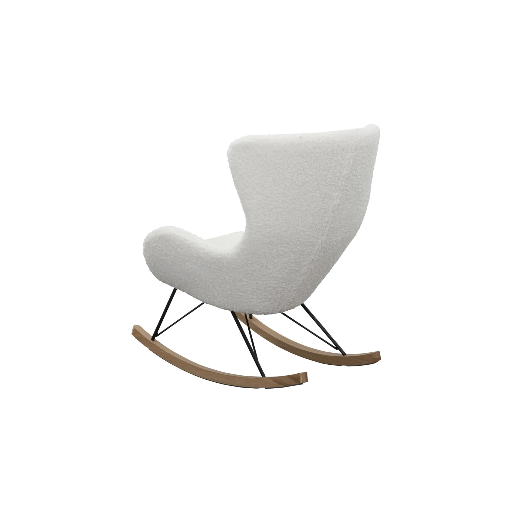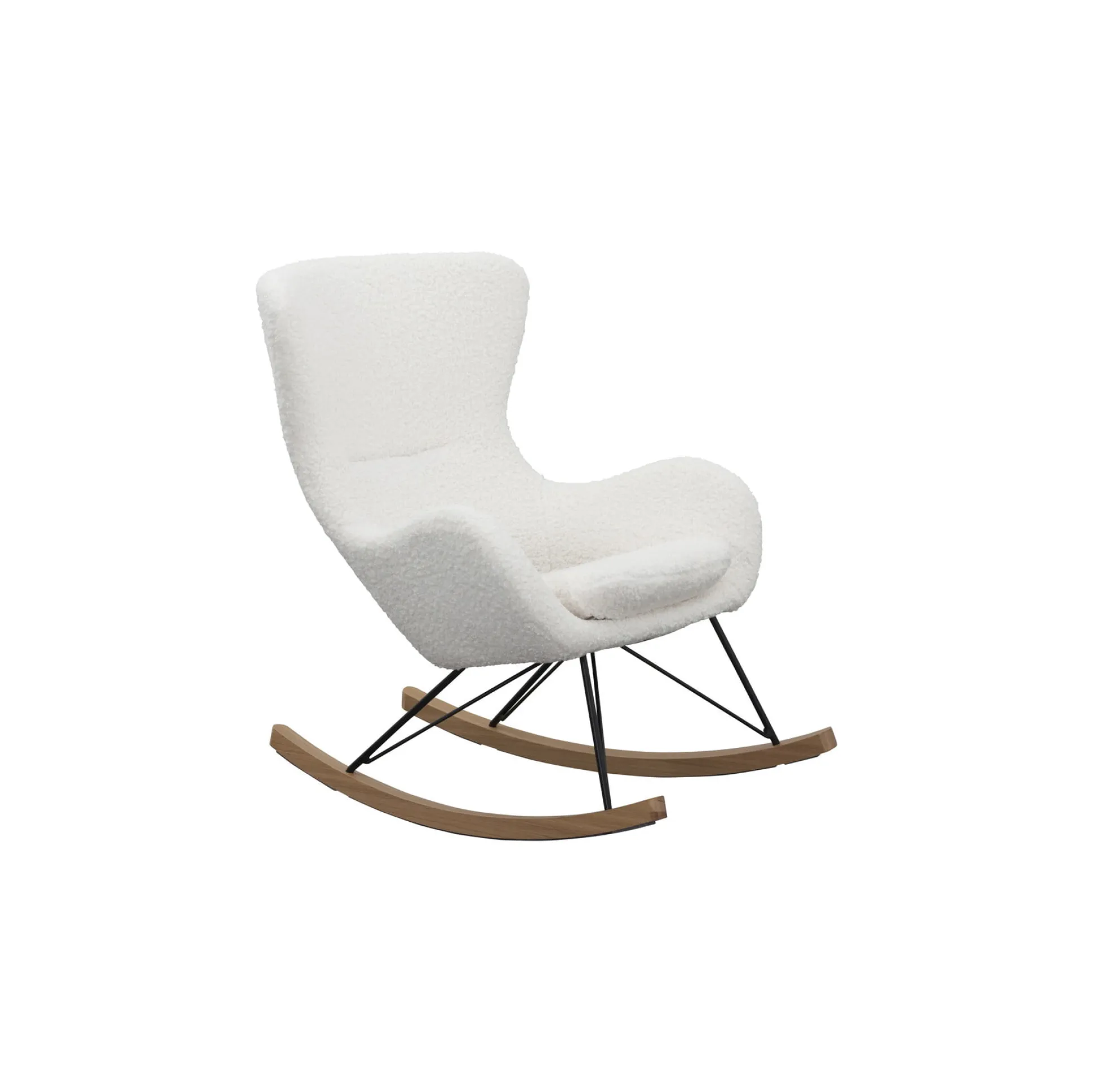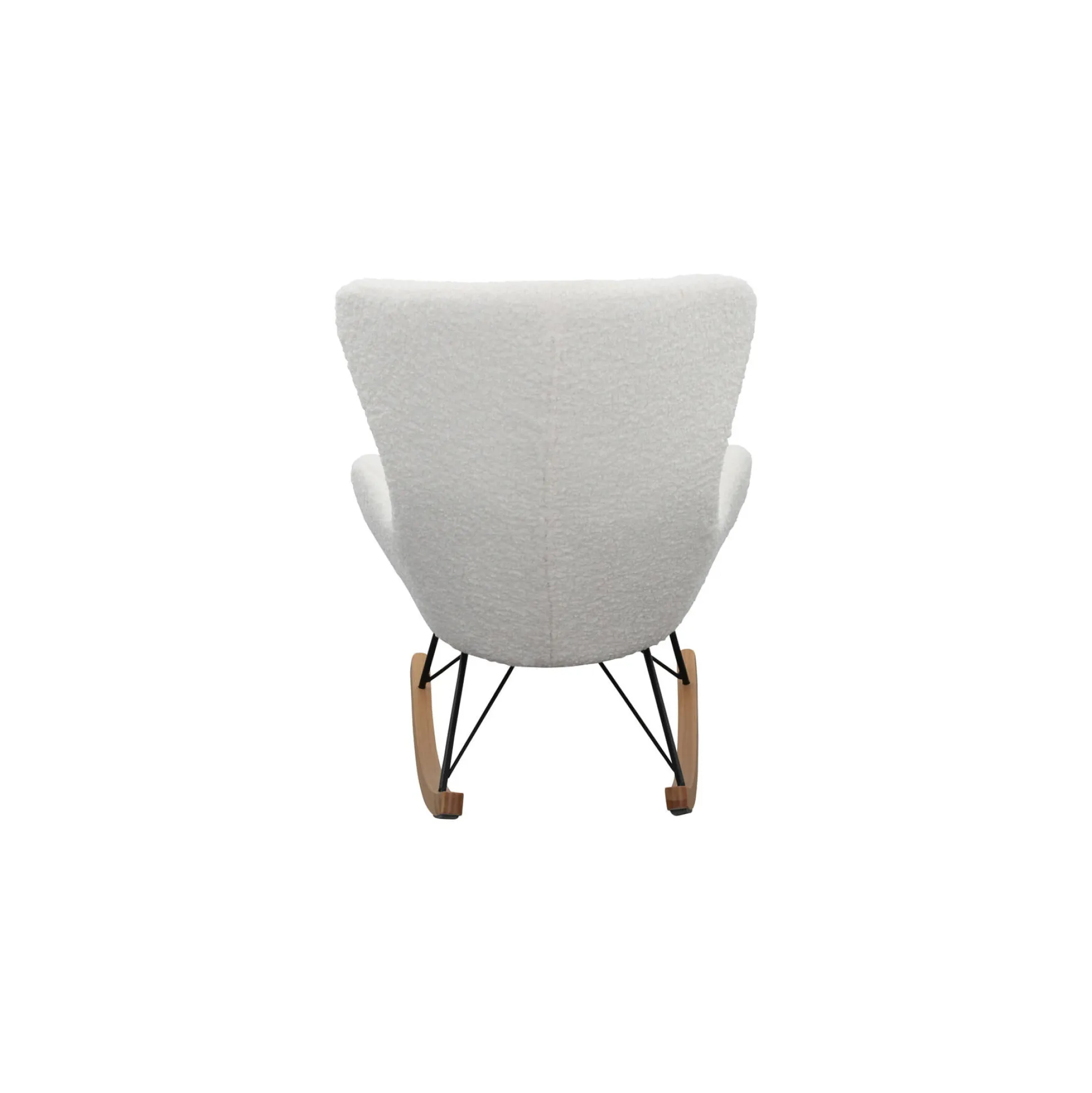 In deze schommelstoel rust je helemaal uit! Door zijn ontwerp ben je van een goed zitcomfort verzekerd. Het stevige frame is een combinatie van massief hout en zwart gepoedercoat metaal. De stoel is gestoffeerd met een teddy bont stof. De schommelstoel heeft een zithoogte van 46 centimeter, een zitbreedte van 42 centimeter en de hoogte van de armleuningen is 61 centimeter. Gemakkelijk te monteren doormiddel van bijgeleverde montagehandleiding.