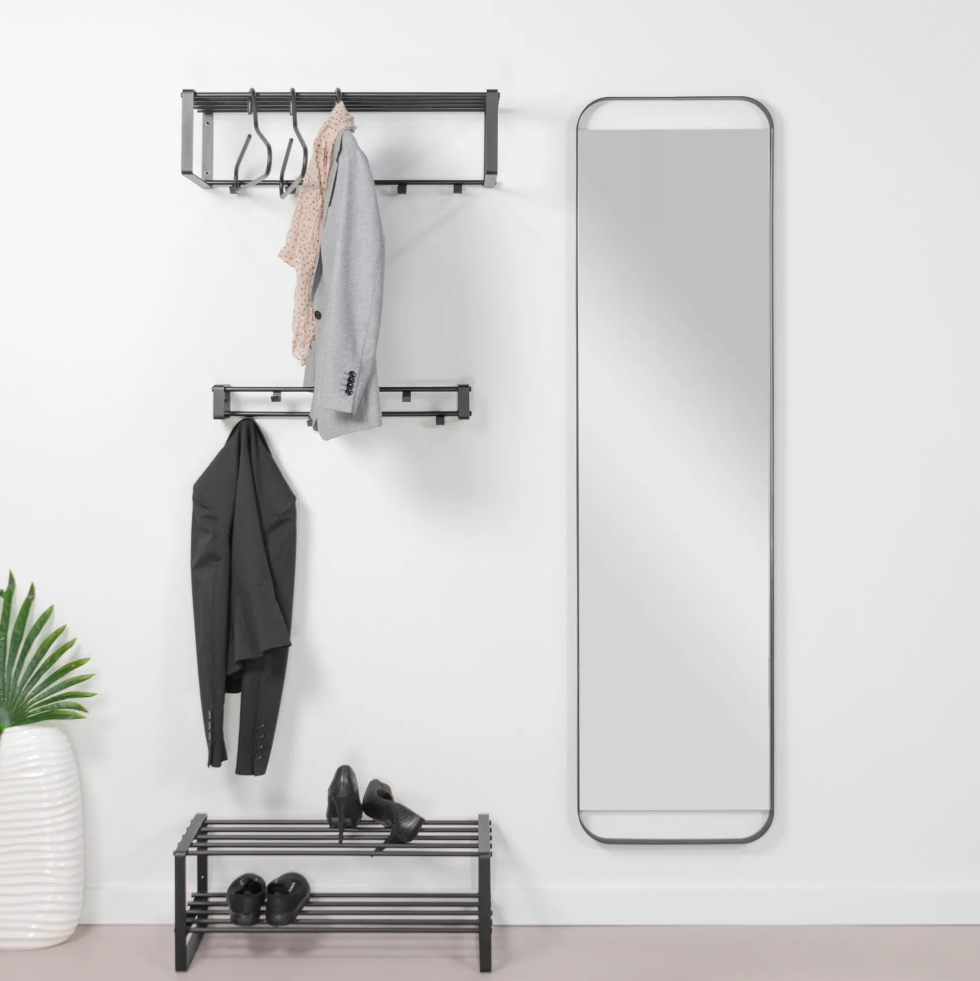 Voordat je de deur uitstapt werp je nog even een snelle blik in de spiegel en besef je je dat je er weer goed uitziet vandaag! Door zijn minimalistische design past deze spiegel goed in een stoer of minimalistisch interieur. Goed te combineren met de andere producten uit dezeserie! Verkrijgbaar in verschillende uitvoeringen.