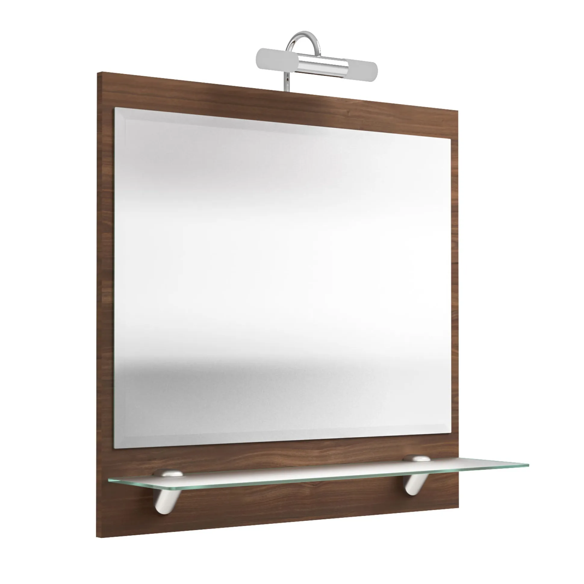 Door zijn platte design is deze spiegel een goed alternatief voor de conventionele spiegelkast. Om je spullen kwijt te kunnen is er een mat glazen plank aanwezig. Voor goed licht is er een chroomkleurige ledlamp op de spiegel gemonteerd van 2x 2,5 watt (4000K). Deze spiegel is 70cm breed, 68cm hoog en 22cm diep en verkrijgbaar in het wit, walnoot en antraciet.