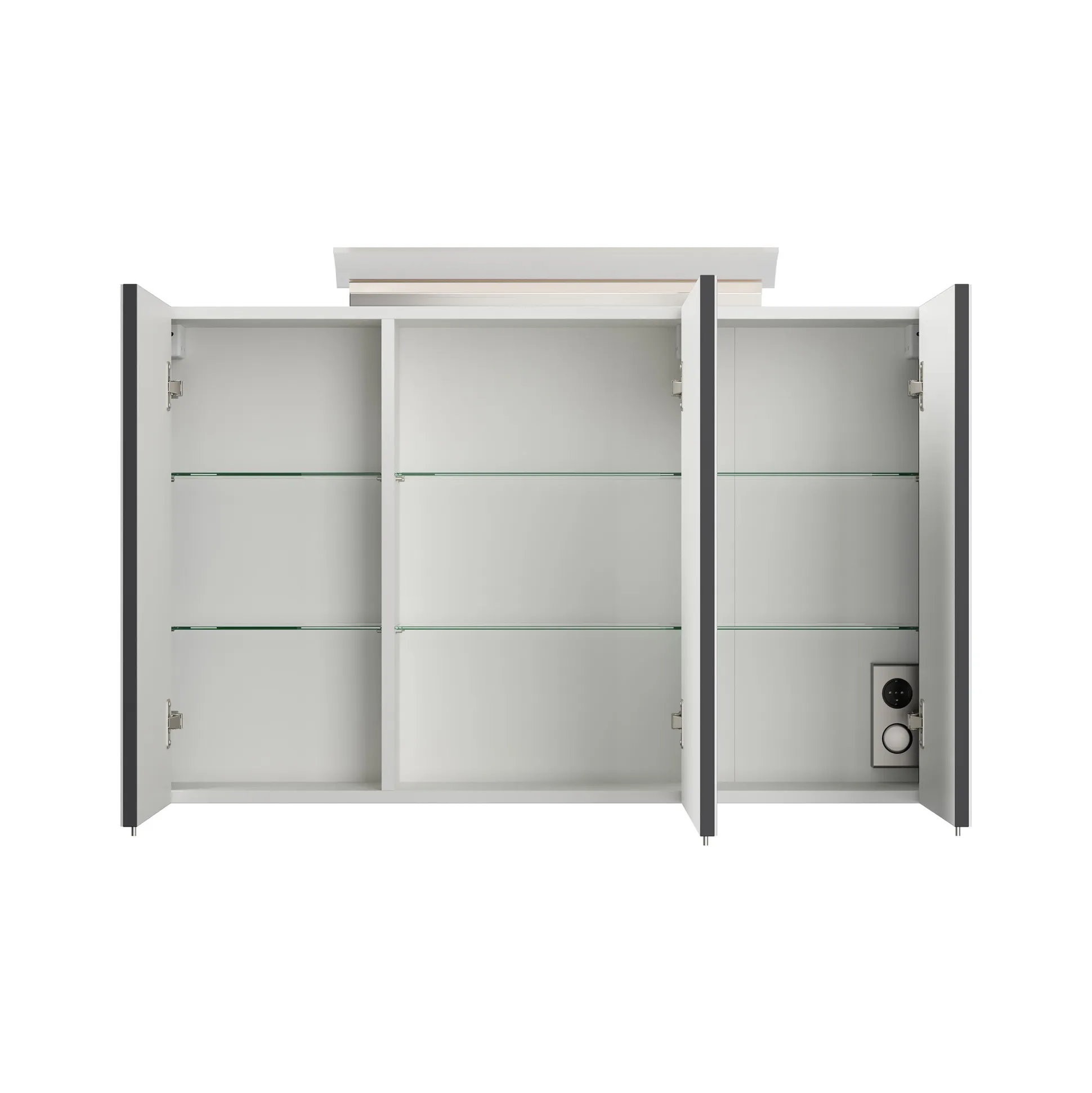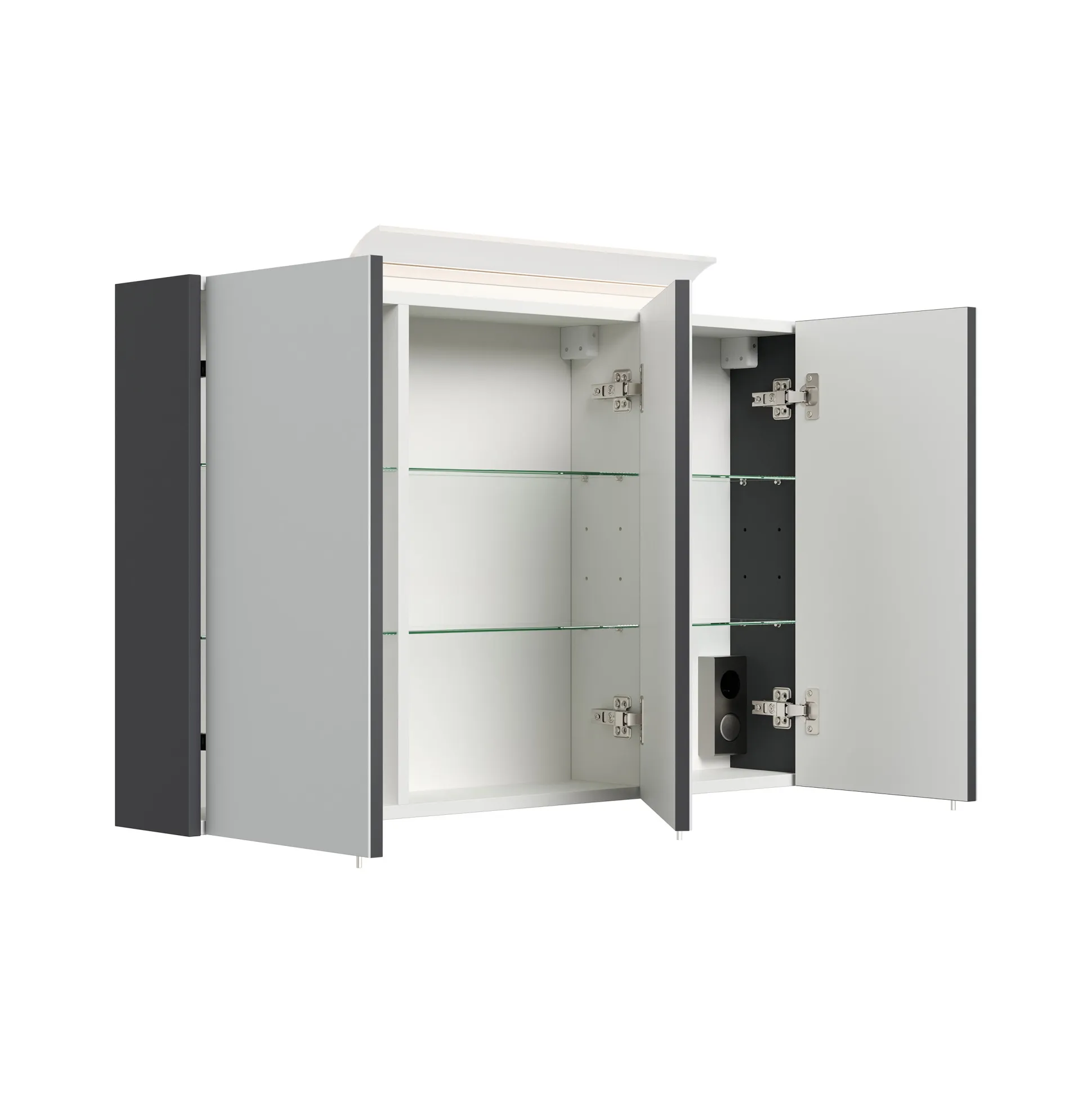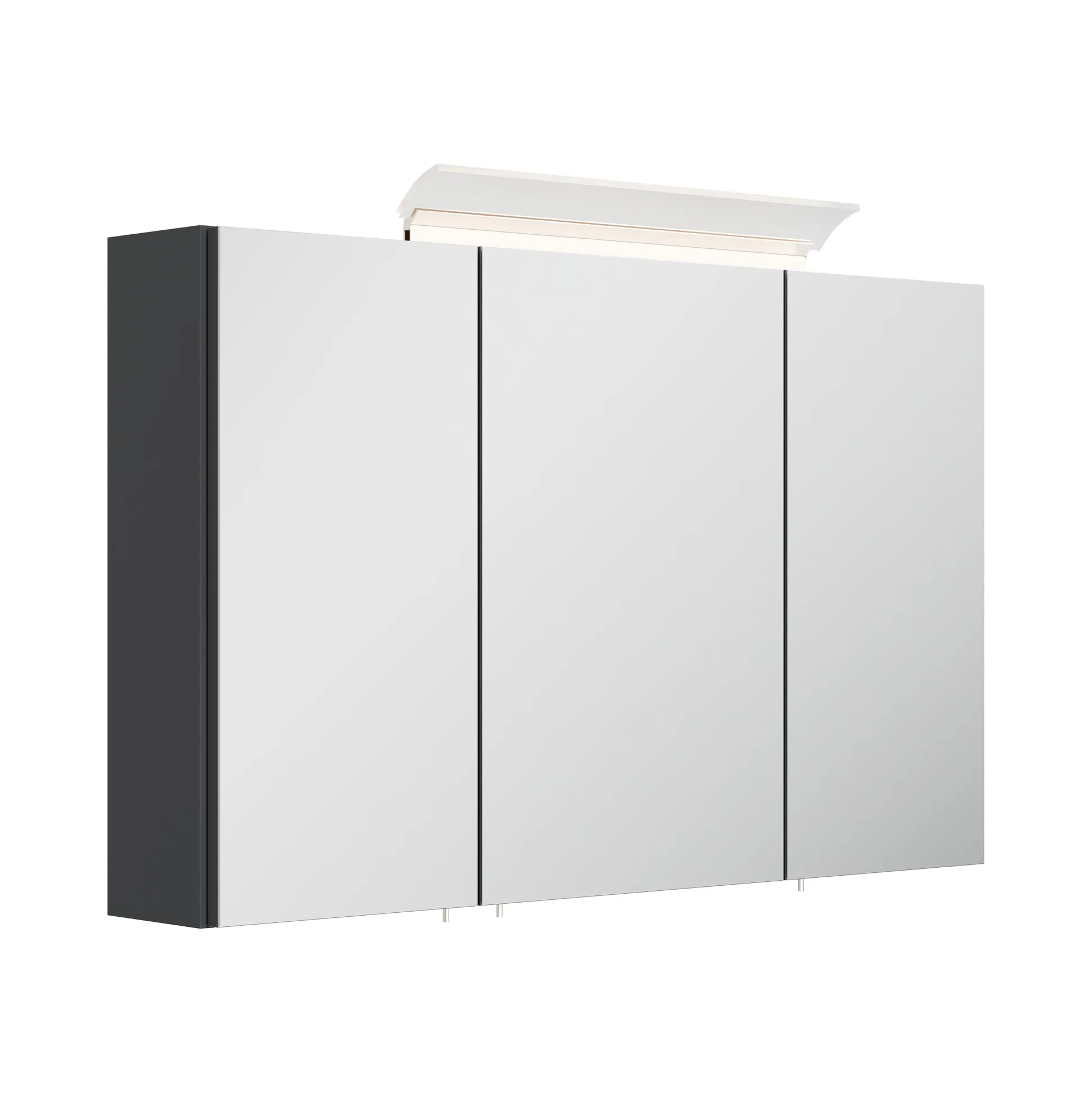 De Spiegelkast Calais Grafiet 100 cm biedt een moderne en functionele badkameroplossing, ontworpen in Duitsland. Gemaakt van een degelijke spaanplaat en afgewerkt met een matte grafiet Softtouch-coating, beschikt deze kast over 2 spiegeldeuren en 6 flexibel inzetbare glazen planken. De soft-close deuren en laden zorgen voor een stille werking. De afmetingen zijn 100 x 62 x 17 cm.
