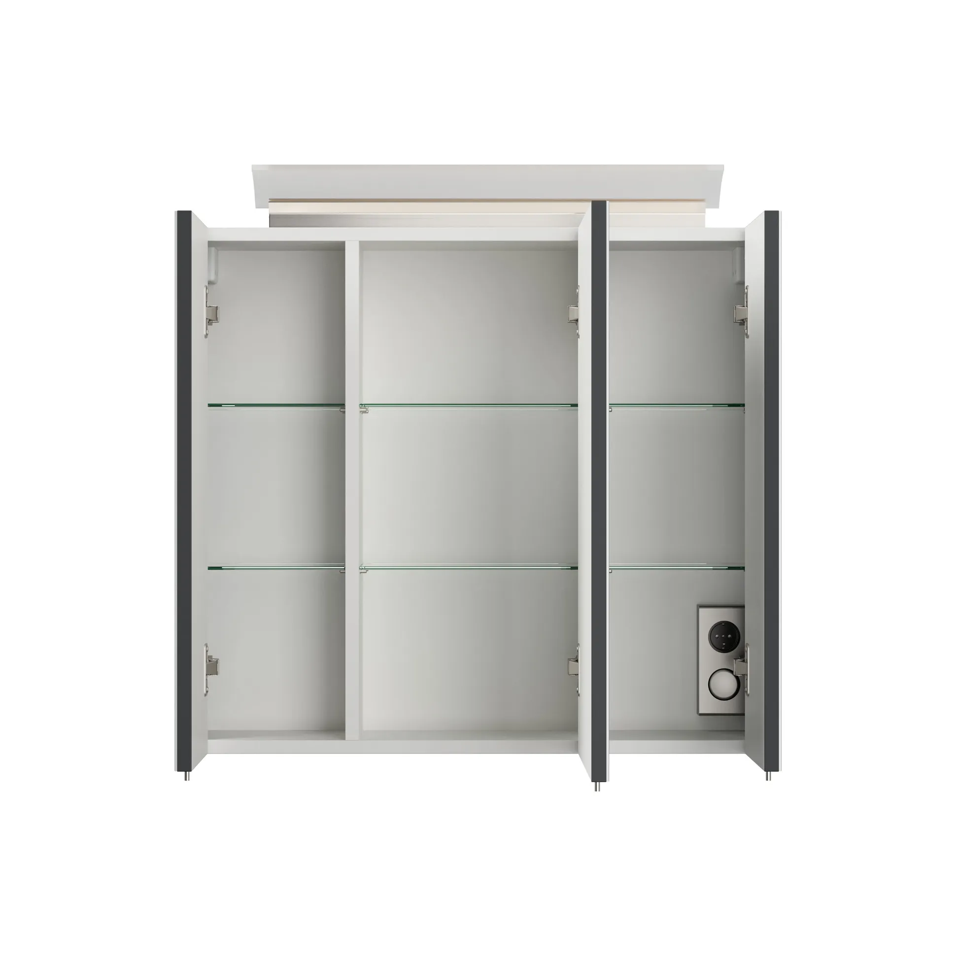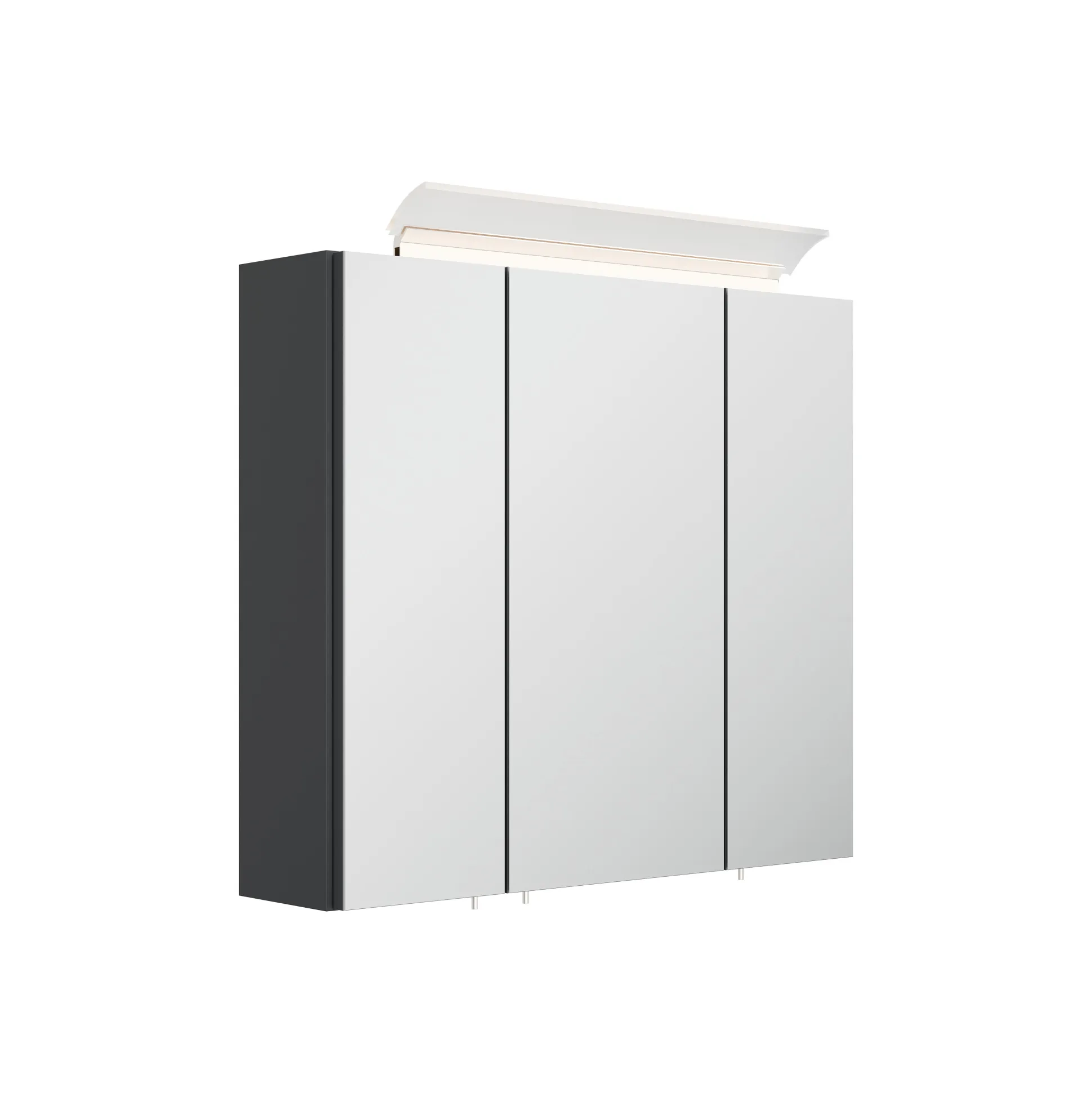 De Spiegelkast Calais Grafiet 70 cm biedt een strakke en moderne badkameroplossing, ontworpen in Duitsland. Dit meubel, vervaardigd uit een degelijke spaanplaat en afgewerkt met een matte grafiet Softtouch-coating, zorgt voor een onderhoudsvriendelijke en eigentijdse look. Met 2 spiegeldeuren en 6 flexibel inzetbare glazen planken is er volop ruimte voor al je badkameraccessoires, terwijl de soft-close mechanismen zorgen voor een stille werking. De afmetingen zijn 70 x 62 x 17 cm.