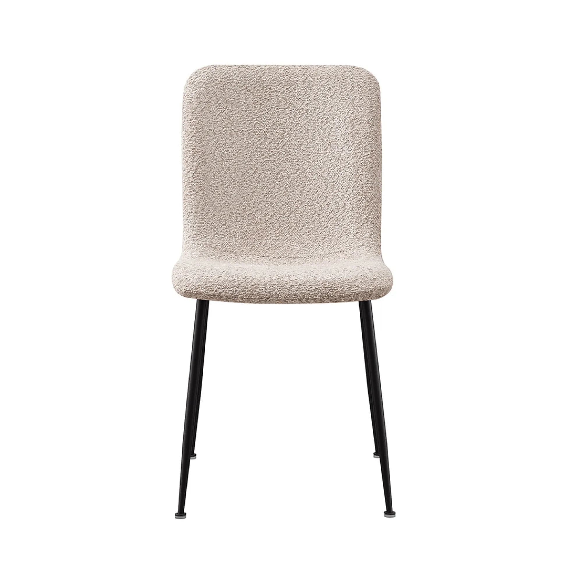 Deze trendy eetkamerstoel heeft metalen ronde zwarte poten en staat stevig op de grond. De stoel heeft een goed zitcomfort en is voorzien van een mooie Bouclé stoffering. Bouclé is een stof dat bestaat uit geweven patronen, draden en lussen van verschillende stoffen, hierdoor ontstaat een grovere structuur welke zacht aanvoelt. Verkrijgbaar in verschillende moderne kleuren waardoor deze gemakkelijk in je interieur plaats neemt. De stoel heeft een zithoogte van 47,5 centimeter en een zitdiepte van 40 centimeter.