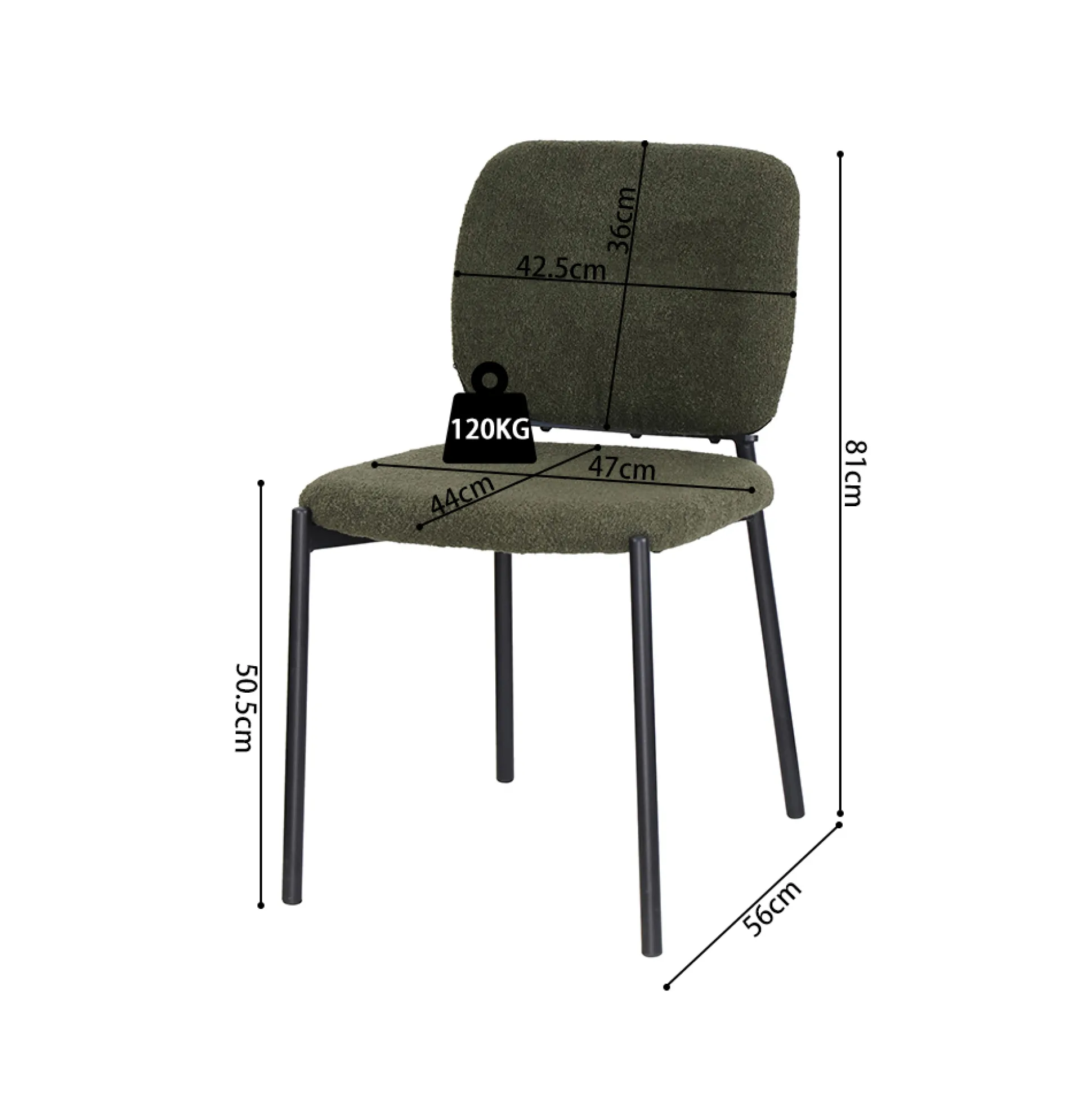 - Maximaal belastbaar gewicht: 120 kg