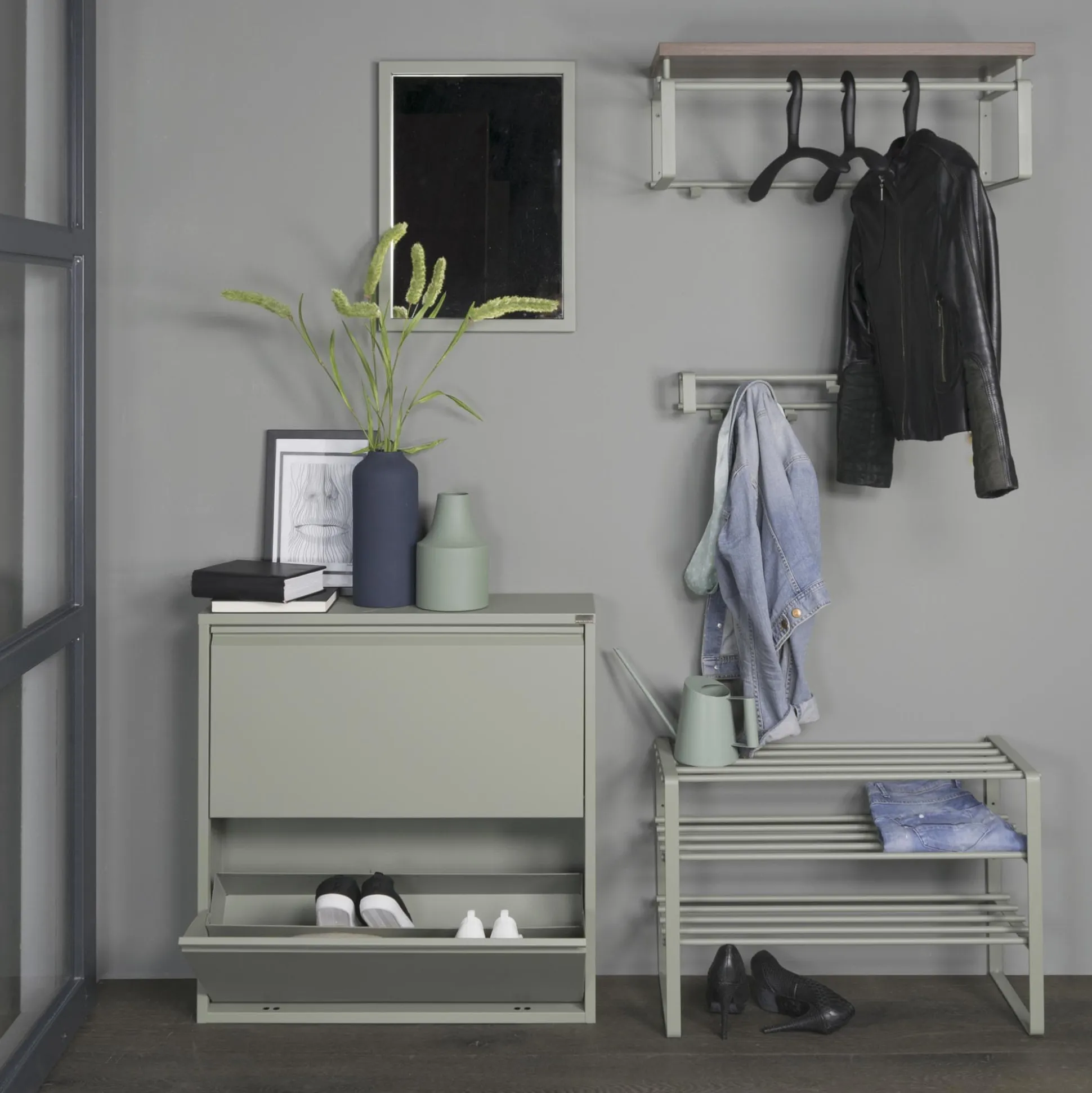 Stevige kapstok met meerdere haken en een roede om al je kledingstukken op kwijt te kunnen. De ruimte bovenop kan bovendien goed gebruikt worden voor sjaals, hoofddeksel of andere accessoires.