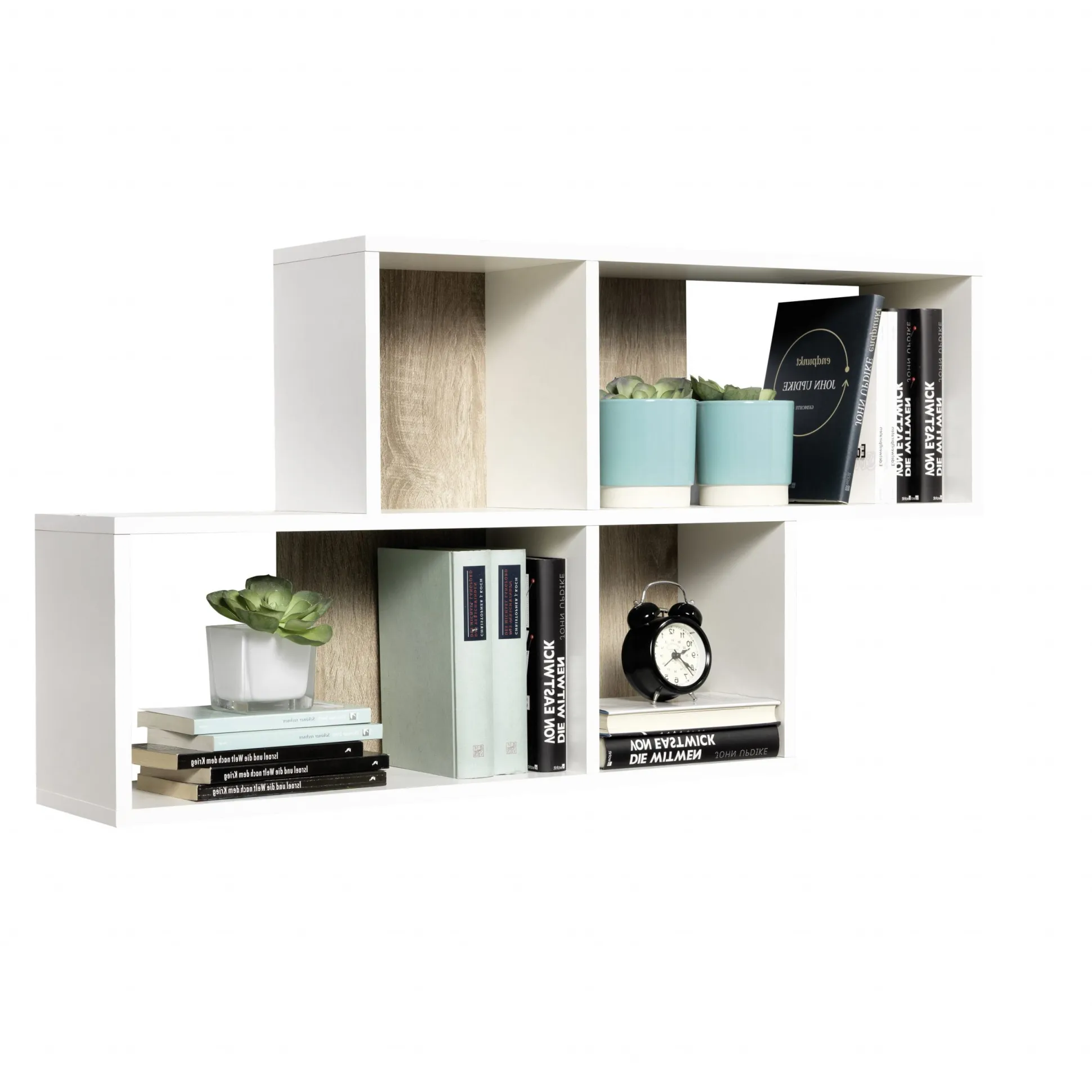 Dit open design wandrek van 100cm breed heeft 4 open vakken met een witte achterwand. Het is vervaardigd uit stevige milieuvriendelijke meubelplaat met een mooi melamine afwerking. Geschikt voor je lectuur, een vaasje, een potje etc.