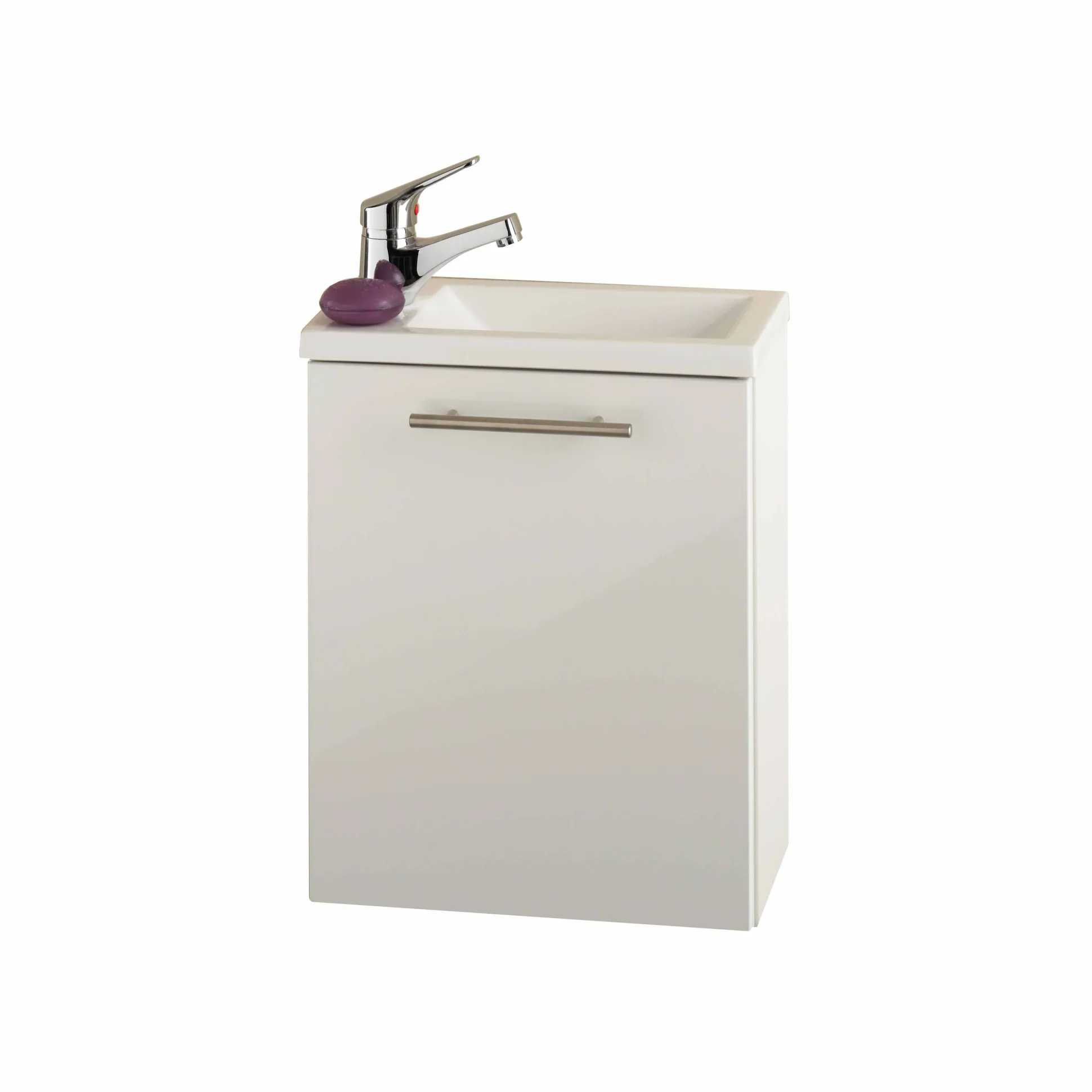 Deze praktische wastafel kun je gemakkelijk in de kleinere ruimte kwijt. Met zijn afmetingen van 40 cm breed, 50,5 cm hoog en 22 cm diep ook goed te plaatsen in een toilet. Het deurtje kan zowel linksom- als rechtsom gemonteerd worden. Het meubel is afgewerkt met hoogglans spaanplaat-fronten en door zijn melamine afwerking is deze kast gemakkelijk schoon te houden en langer beschermd tegen stof, vuil en krassen. De wastafelkast wordt geleverd exclusief kraan, toevoerleidingen naar de kraan, afvoerplug en zwanenhals.